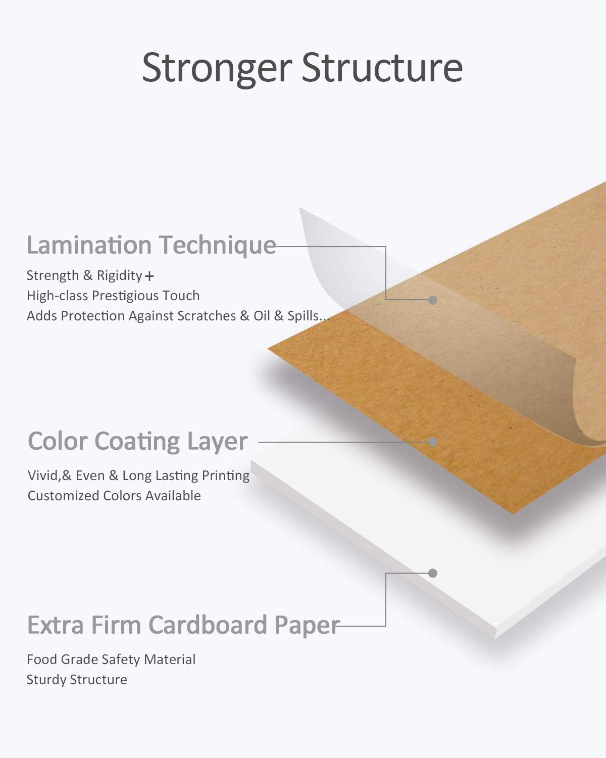 - High Quality:We adopt superior raw material only,and our box quality through the food safty quality text(FDA).Most of the paperboard after printing that you will find inferior Material will give a unhealthy smell, and it will fade after quick friction,Especially pink and black. Our paper was crafted from sustainably sourced, FSC-certified forest, (FSC-C215221) ensuring an eco-friendly choice for your home .