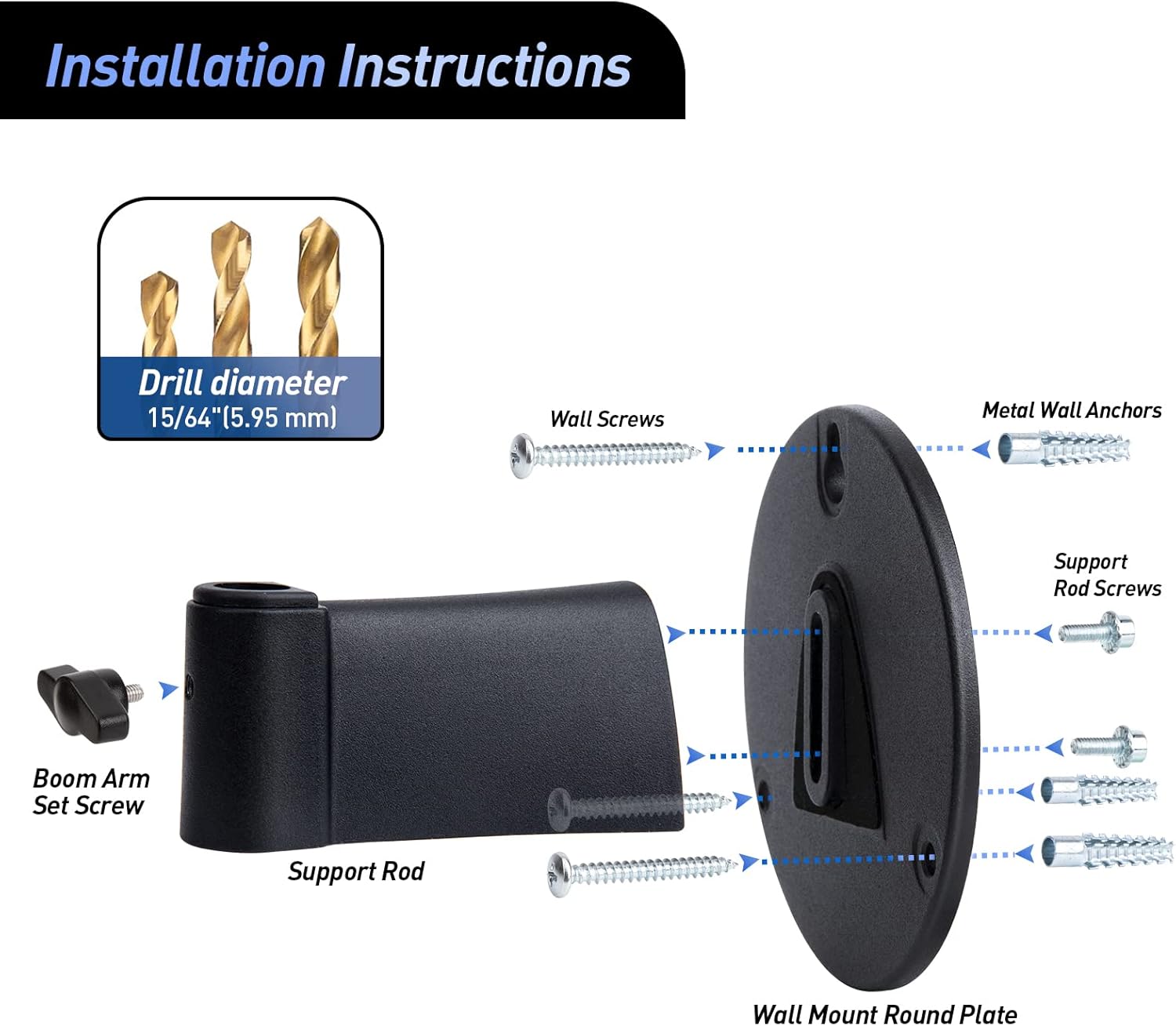 - Metal Wall Anchors - Stronger than normal plastic wall anchors, prevents the product from falling off the wall during use and protects your Microphone and Mic Boom Arm.