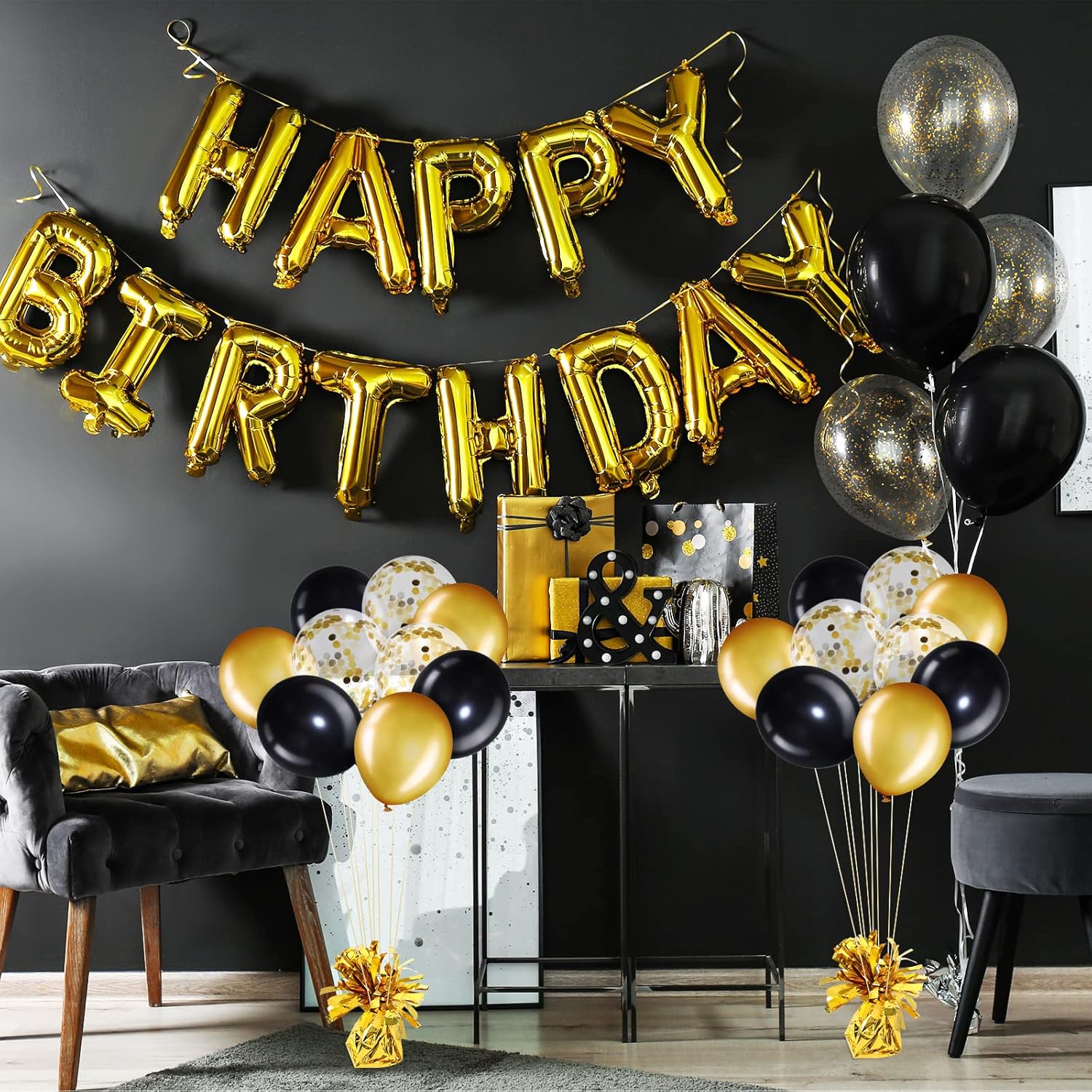 56 Pcs Balloon and Balloon Weights, 50 Pieces Balloons Decorative Birthday Confetti Balloons 6 Pieces Balloon Weights Pack Holder Balloons Party Wedding Birthday Decors(Black, Gold Series)