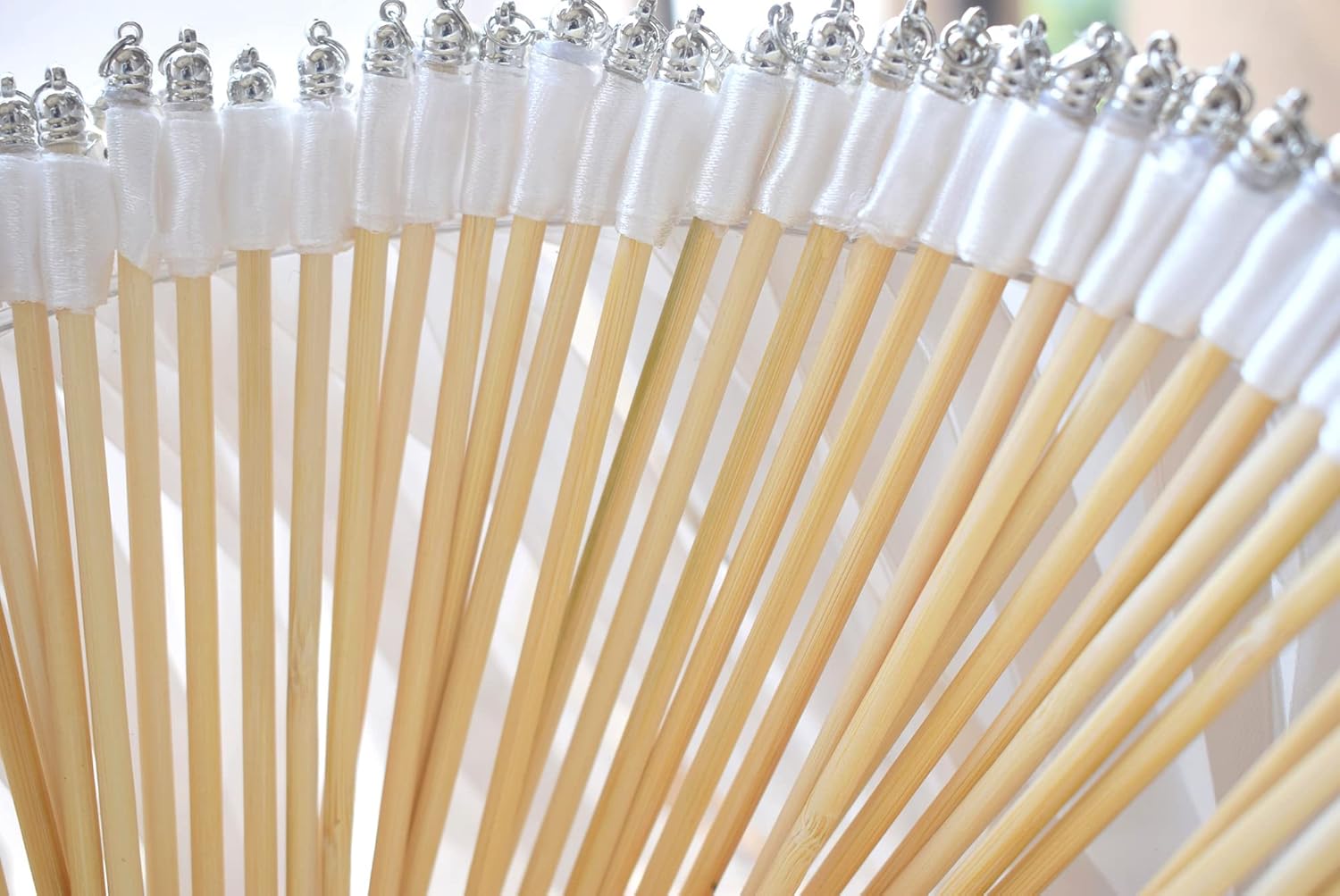 - These ribbons are cut and professionally heat-sealed to prevent fraying, then securely affixed to sturdy and smooth wands and topped with a metal bell. The bell makes a cheerful, but soft, jingle that won¡¯t interfere with the recessional music that you worked so hard to pick out.