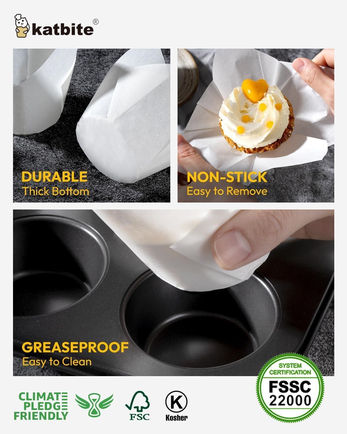 - 👍HEALTHY MATERIAL & OVEN SAFE - Made from natural 100% wood pulp and totally fluorescent free, safe and ensure NO SMELLS, NO POISON, NO LEAKING DYES. there is no need to worry about health problems.They withstand temperatures up to 220°C/425°F, which is higher than most recipes require, so it It can be put directly into the oven without worrying about safety.