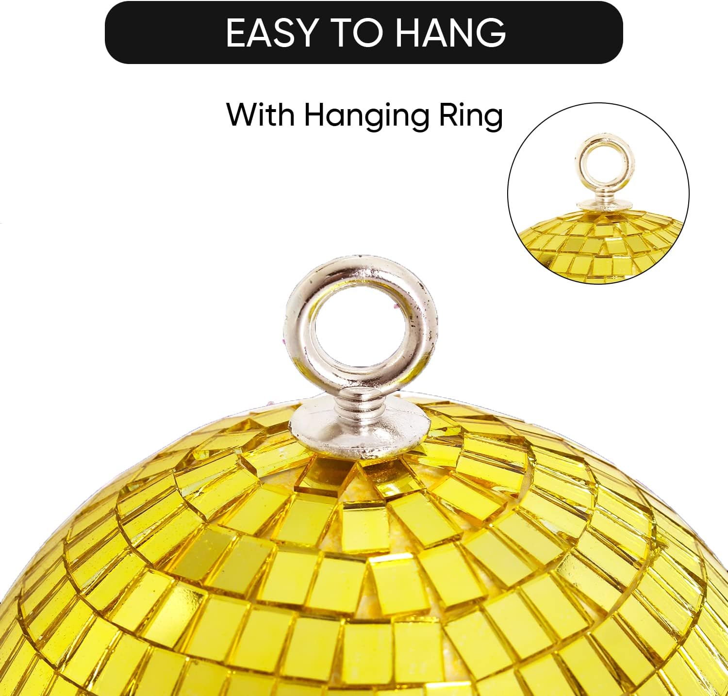 - Sparkly Reflective Design: The 6 inch disco ball with bright gold tiles around, each small glass spacing is consistent and color is same, making the light more even. When light shines on mirrorball, each facet reflects light back into the air, casting it into dozens of small beams that stream out in all directions, and will add lots of light and reflection across walls and ceiling.