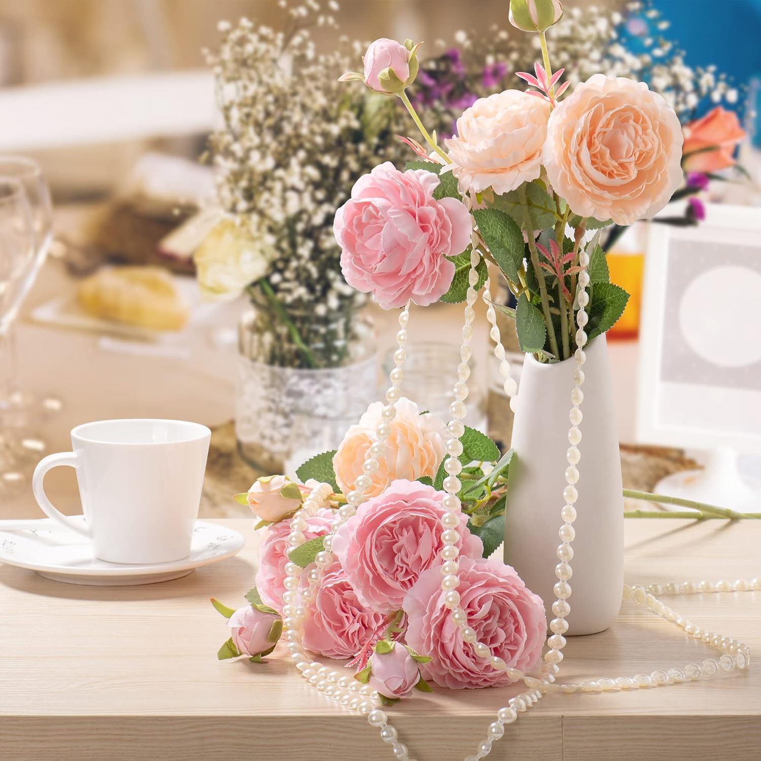 - Faux Pearl Garland: Add the elegance of pearls to your decorations, add sparkle and glamour to your handicrafts with this pearl garland
