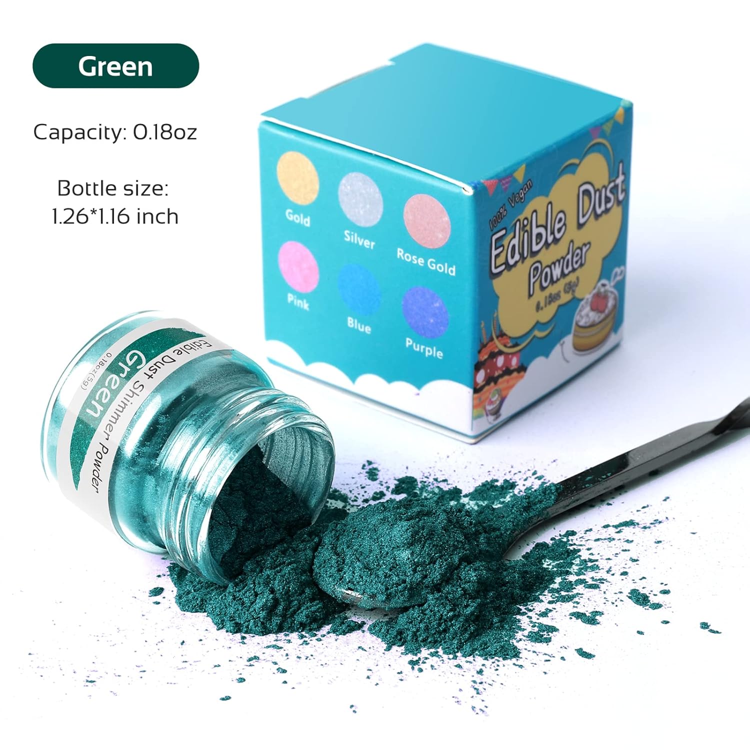 Jelife Green Edible Luster Dust - 5 Grams Food Grade Cake Dust Shimmer Powdered, Edible Metallic Powder Food Coloring for Cake Decorating, Chocolates, Fondant, Drinks, Painting & More, Vegan