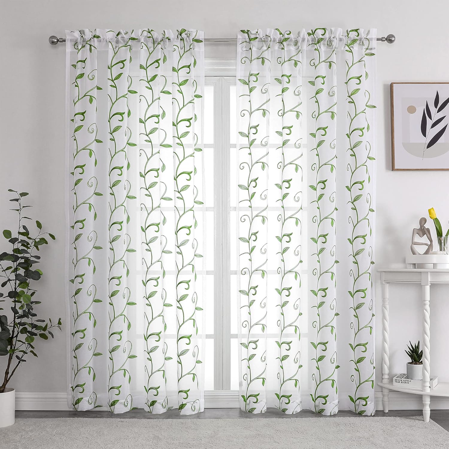 - 【FANCY FOIL PRINT】 These elegant sheer curtains designed with foil printed leaves pattern, which features smooth fabric with silky touch and a beautiful drape that bring tropical charm and luxury to your interior. Perfect for bedroom, living room, dinnning room or kitchen windows.