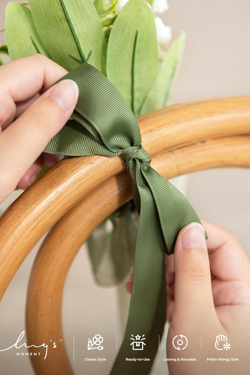Ling's moment 8pcs Wedding Artificial Aisle Pew Flowers Chair Decorations White & Sage Green Arrangements with Chiffon Ribbons for Ceremony Chair Back Floral Reception Church Party Outdoor