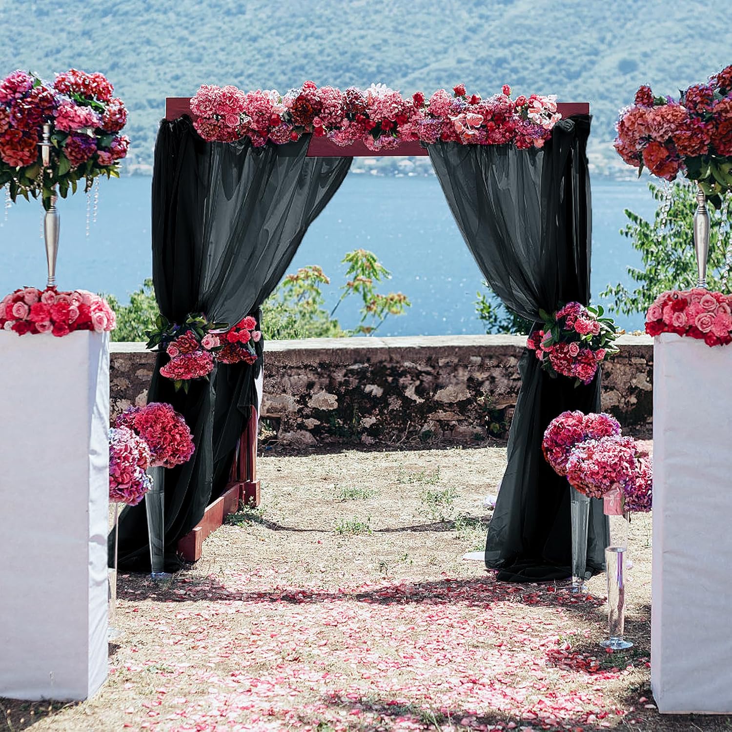 - Wrinkle-Free Fabric: The wedding curtain backdrop is made of 100% sheerness and thickness chiffon fabric, looked simple and elegant, touch silky soft and used sturdy. Chiffon fabric is easy to clean. Black chiffon curtains allow seamless integration with any color scheme via decorations