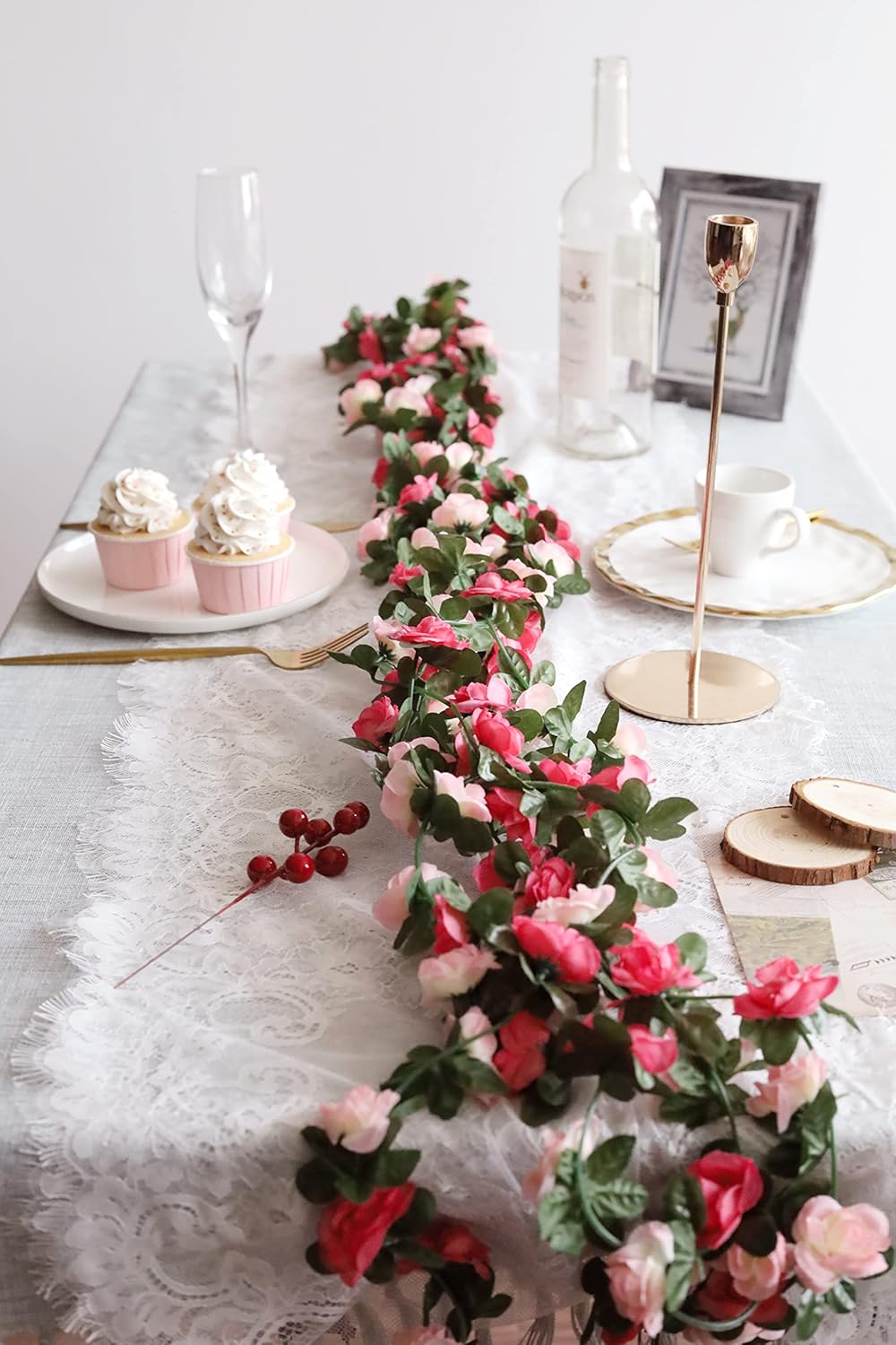 - Perfect Decoration: Artificial rose garland is ideal for wedding decorations,such as wedding arches, chairs, windows, mirrors, swings, message board, aisle, stairway, fences, mantles and etc, also suitable for ceremony, party, centerpiece decorations, home decoration and holidays like Halloween and Christmas Day