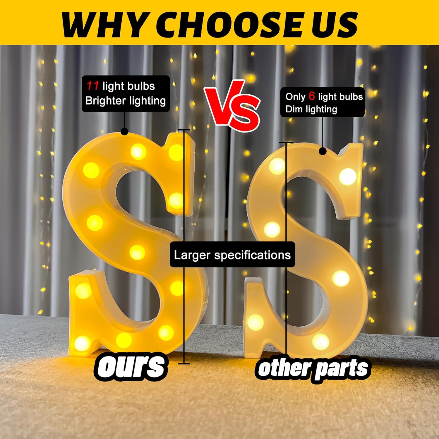 HXWEIYE Light Up Letters LED Marquee Letters Light Sign 26 Alphabet and 10 Number Lights Letter for Party Birthday Bar Battery Powered Christmas Decor Letter Lights (Warm White S)