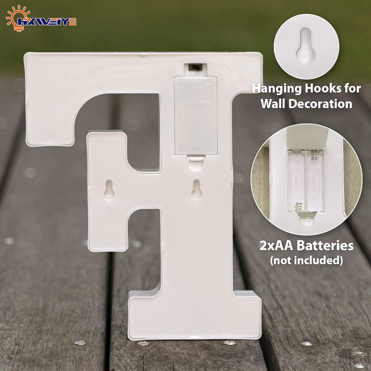 HXWEIYE LED Marquee Letters Lights Sign F, 26 Alphabet Light Up Letter and Number 0-9 Number Warm White Led Letters for Bar Party Birthday Home Wedding Décor