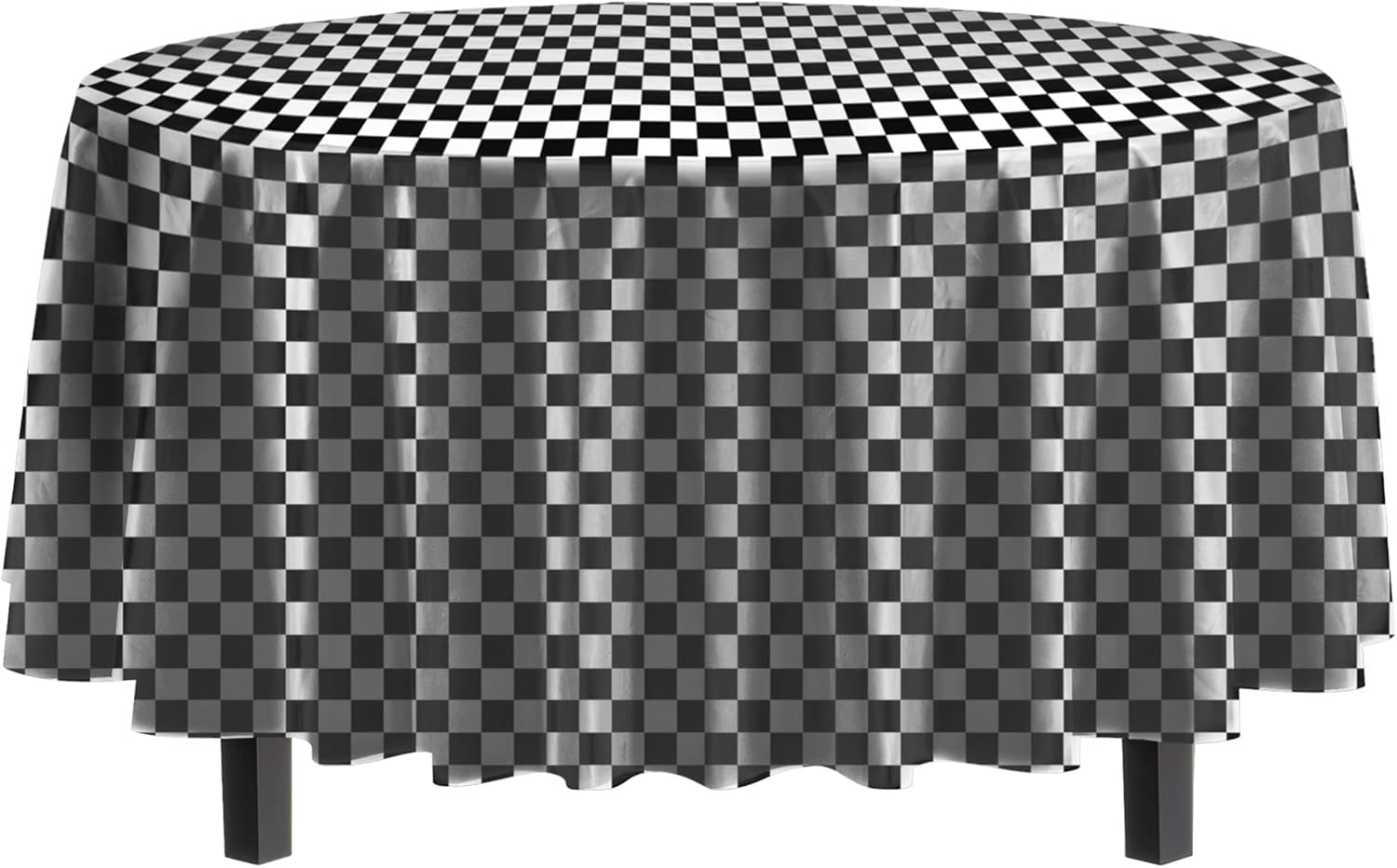 - PREMIUM QUALITY PROTECTION: This 12 pack of 84 in. Checkered Round plastic tablecloths will cover any table up to 7 feet. Unlike your typical paper table clothes these disposable table covers for parties are spill and waterproof!!!