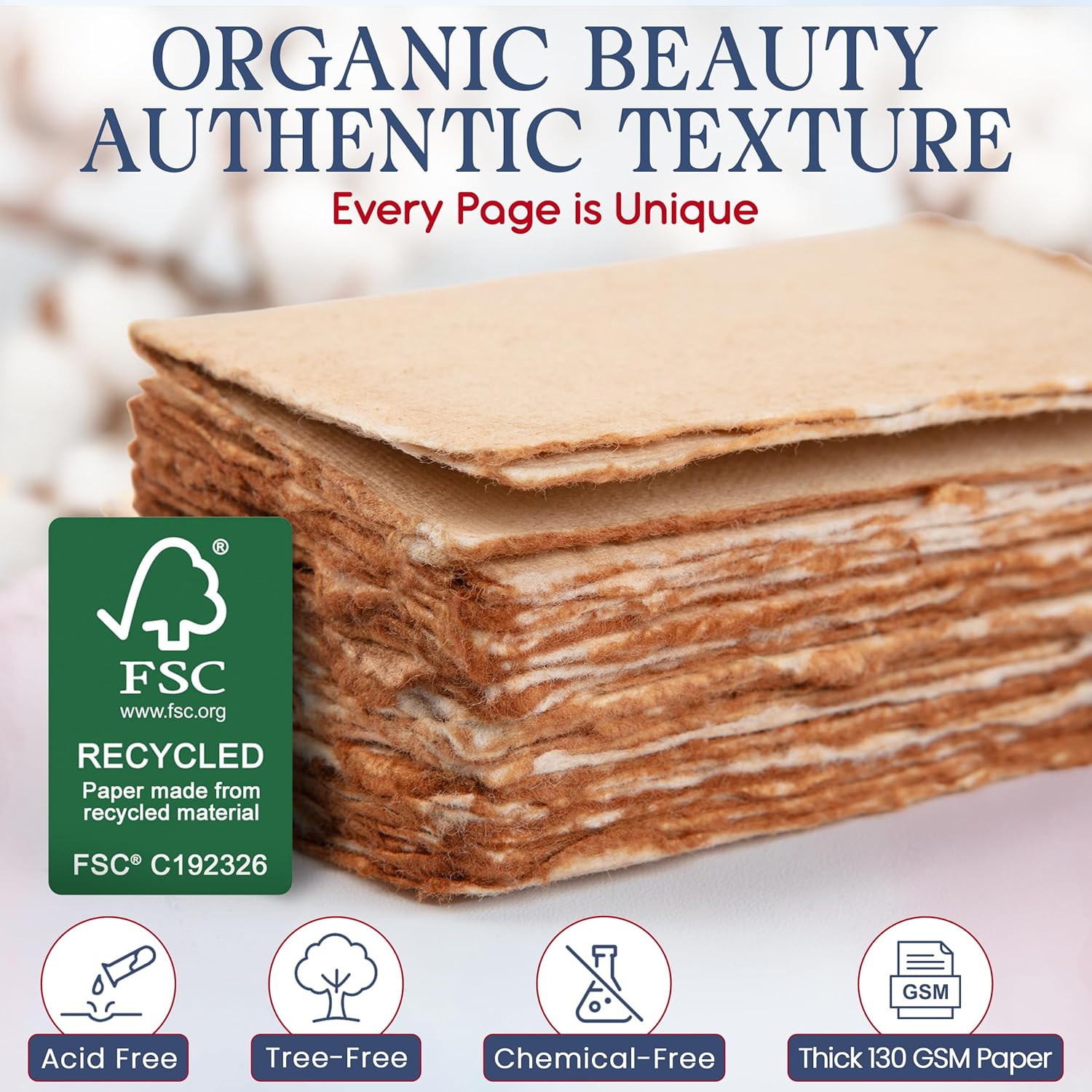 - [Practice Art Sustainably]: Create with a clear conscience using our 100% recycled cotton paper, crafted from responsibly sourced remnants of the local garment industry. Made tree-free, acid-free, and chemical-free through sustainable production processes, our torn edge paper is FSC Certified, ensuring that your art supports a healthier planet