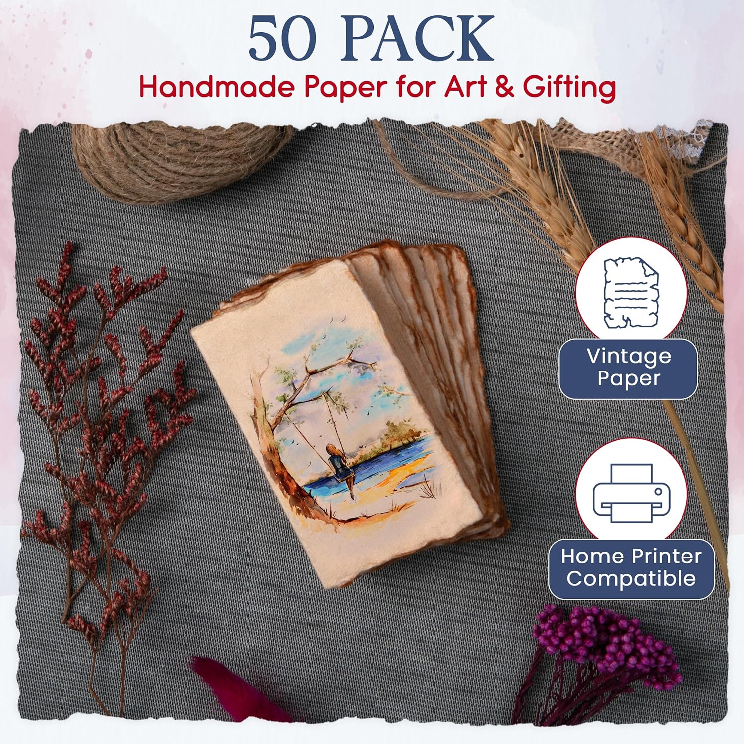 - [Artisan Crafted]: Experience the craftsmanship of our 50-pack handmade cotton deckle edge vintage paper, expertly produced by artisans using time-honored techniques since 14th-century India. This luxurious, sun-dried, cold-pressed 150gsm paper is externally treated with a plant-based sizing solution, making it ideal for writers, artists, and crafters—perfect for watercolor, acrylics, ink, charcoal, colored pencils, mixed media, bespoke stationery, and wedding invitations. Business card size