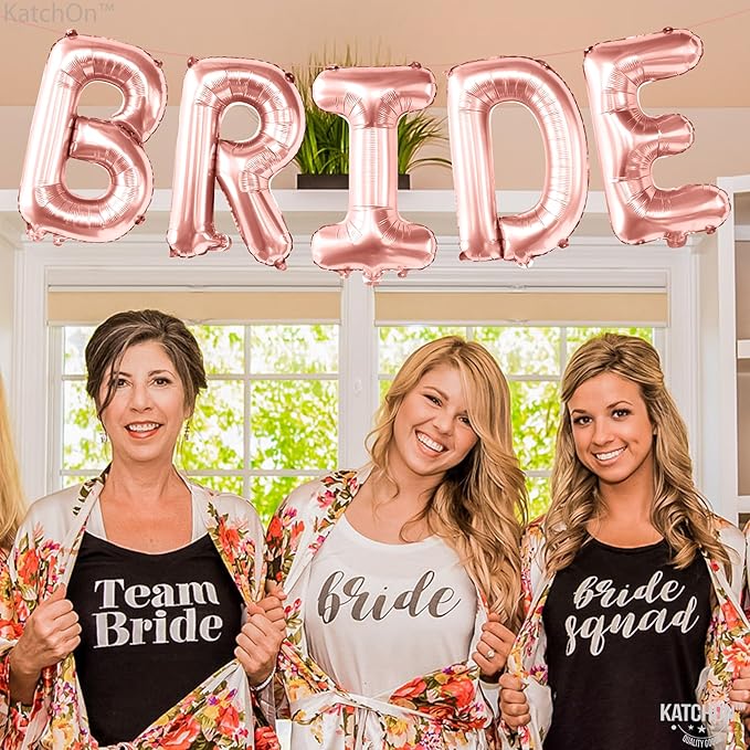- XTRALARGE - 40 INCH | GIANT BRIDE BALLOONS : Celebrate the final toast to the single life of your friend before she becomes a wife. let her last fling before the ring be a event to be remembered with this gigantic bride rose gold balloons for wedding day. This large bride balloons rose gold will complete your rose gold bridal shower decorations and rose gold bride balloon letters for bachelorette party bride letter balloons and bridal party decorations will bring more color and style in your pre wedding photoshoot. bride pool float beach bachelorette decorations