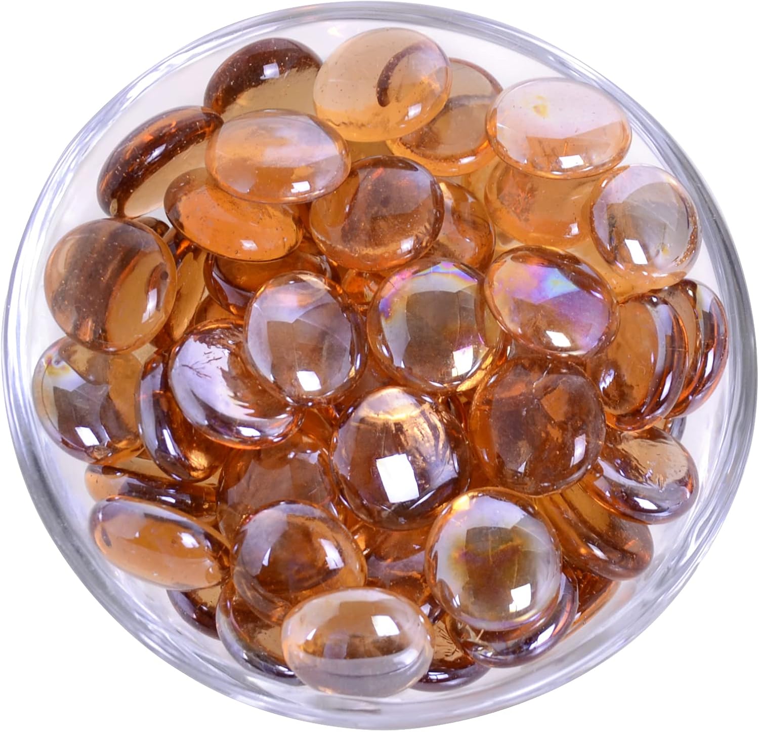 KINGOU Flat Glass Gems/Marbles/Stones/Beads for Vase Filler, Table Scatter, Games - 1 Lbs (17-19mm, Approx. 3/4")-Light Brown