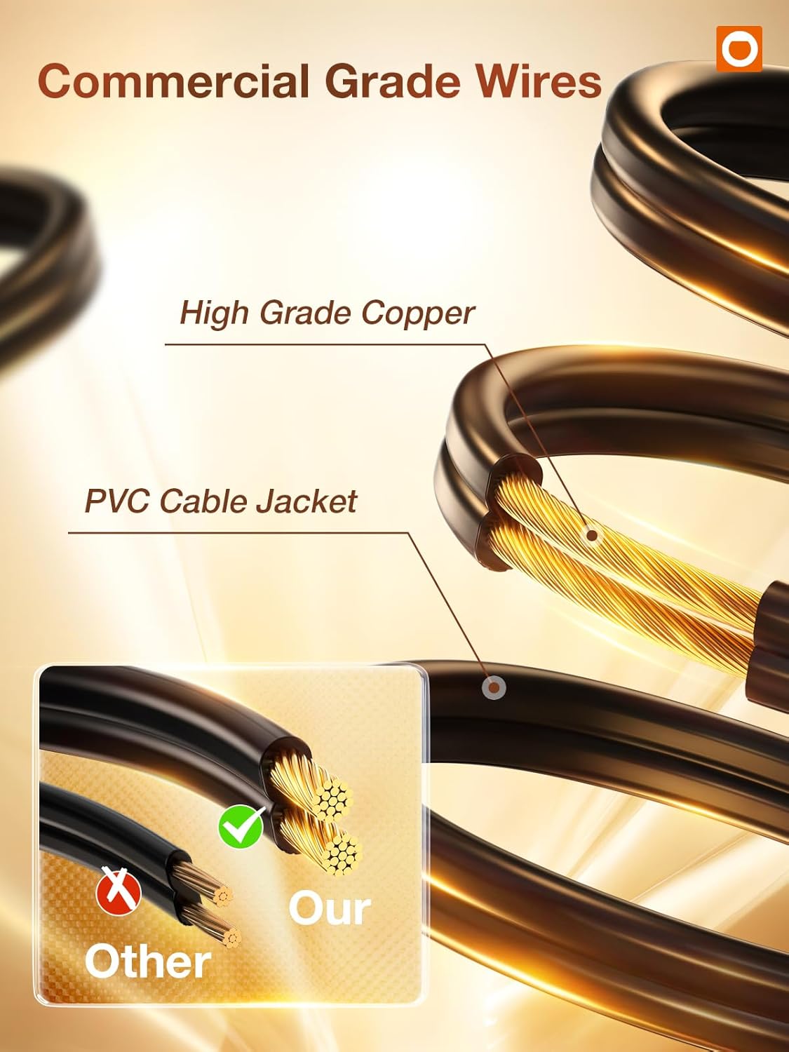 - Weatherproof & Heavy-Duty Construction : These ETL-listed, commercial-grade string lights for outside are engineered for year-round use. The robust insulation shields against extreme weather—sun, rain, wind, snow, and dampness—ensuring reliable indoor and outdoor lighting performance. The flexible cord adds lasting durability for versatile applications.