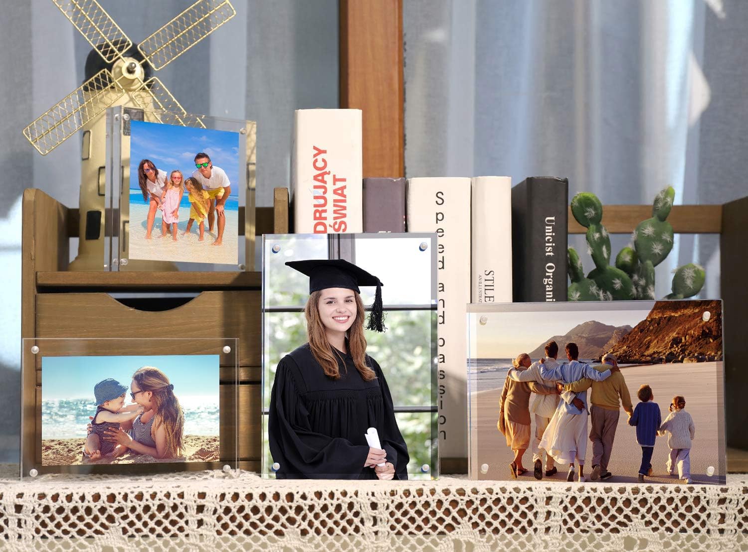 HELPLEX Acrylic Frames, 2 Pack 6x8, 24mm Thick, Frameless, Magnetic, Free Standing