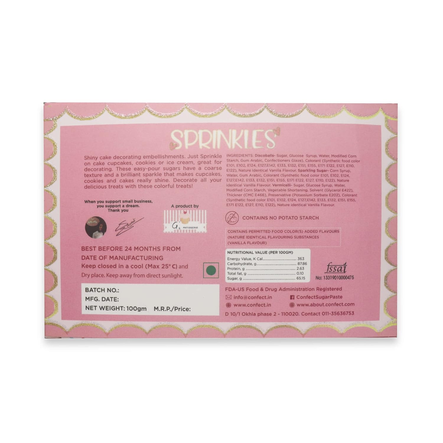 - Confect Sprinkles are made with the finest quality Ingredients & are soft to chew Sprinkles come in a unique pack of 5 assorted colors and sizes.