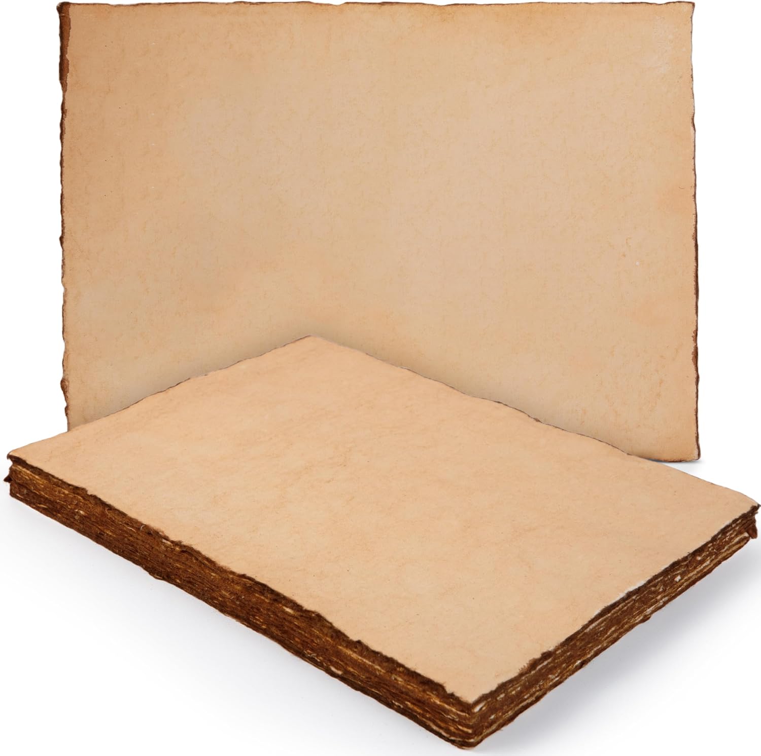 Wanderings Handmade Deckled Edge Vintage Paper - 10"x12" - Thick 300 GSM - Pack of 25 - Watercolor, Mixed Media for Artists, Writers, Bookmaking, Arts & Crafts - 100% Recycled Cotton