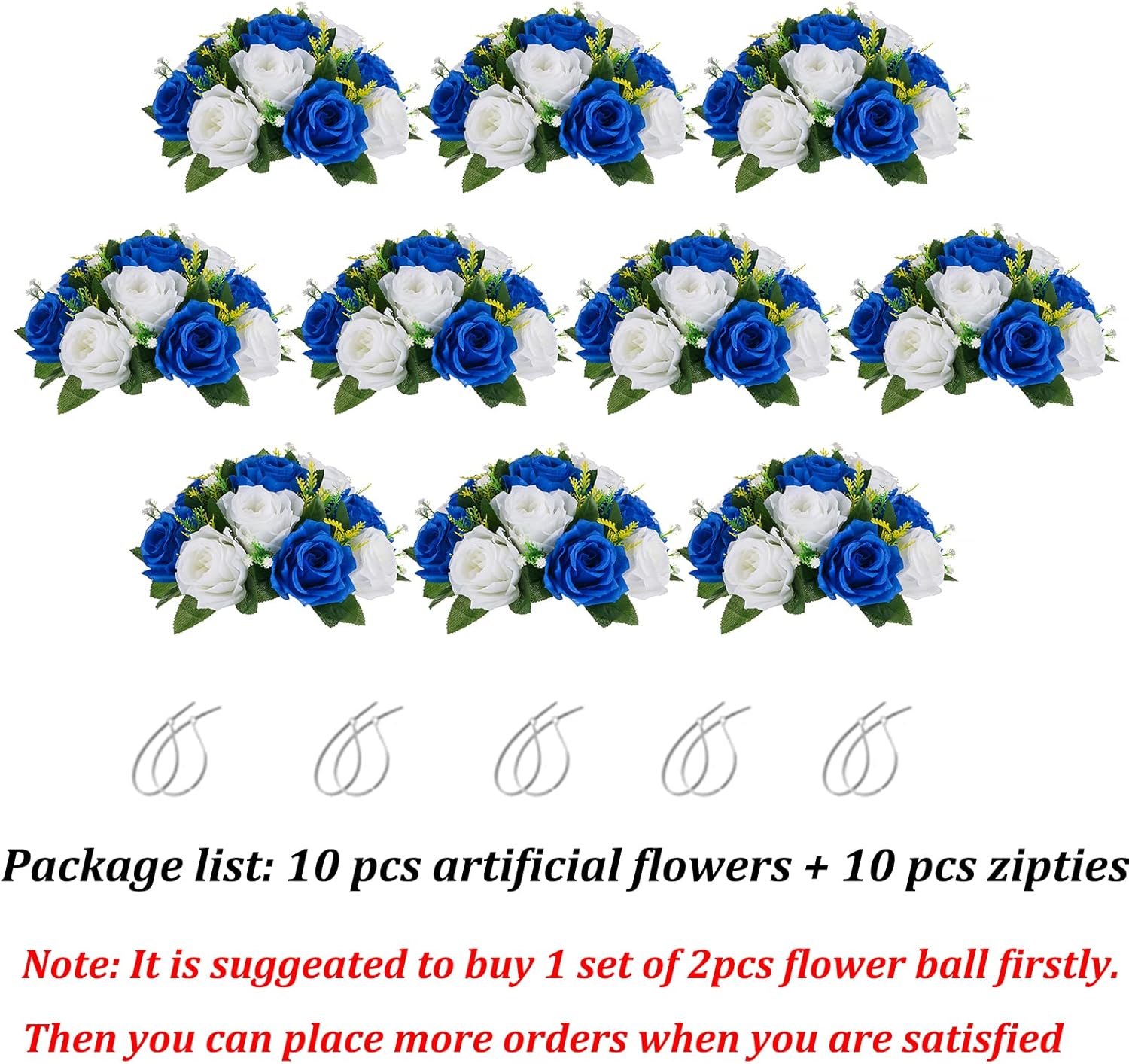 BLOSMON Rose Flowers Artificial for Decoration: 10 Pcs Royal Blue White Fake Kissing Balls for Wedding Table Centerpieces - Artificial Silk Floral Bouquet Arrangements for Home Party DIY Decor