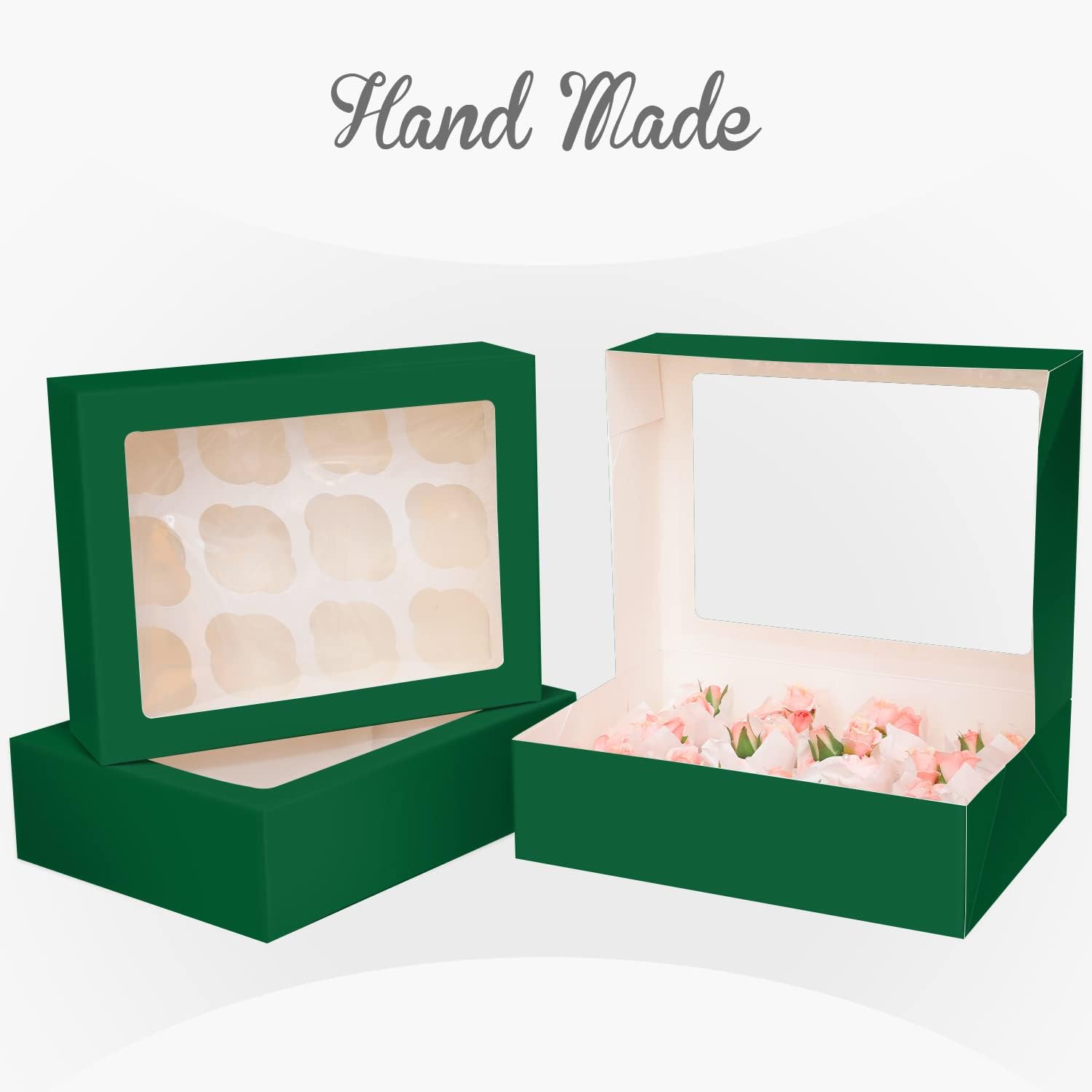 12 Cupcake Containers 10-Packs Forest Green Cupcake Box Cupcakes Carrier, 12 Cupcake Boxes with Window 13"x10"x3.5"(Auto-pop up)