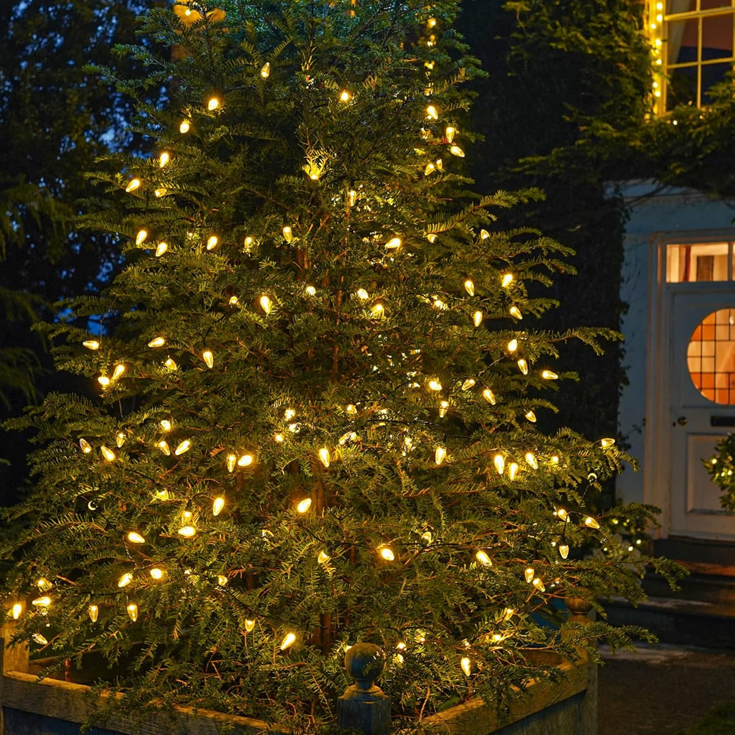 Dazzle Bright C6 Christmas String Lights, 100 LED 33 FT Outdoor Christmas Lights Waterproof Connectable, 8 Modes Lights for Indoor Outdoor Home Garden Yard Xmas Tree Decorations (Warm White)