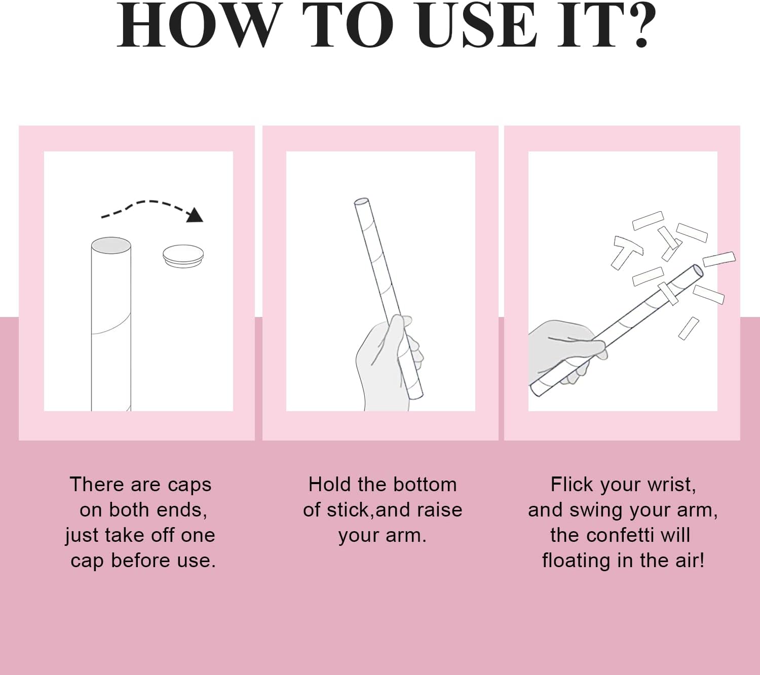 - Easy to Use & Safe : Just open the cap, swing your arm and flick the sticks, the paper confetti flick will flutter in the air, can be used indoor or outdoor party. It's great for party decoration, take gorgeous photos, surprise you friends