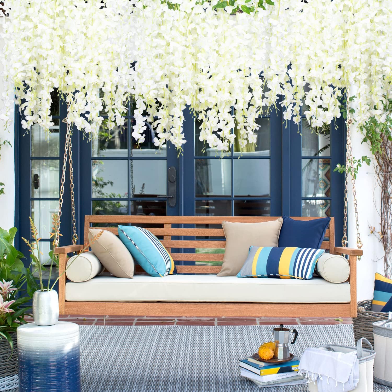 24 Pack Artificial Fake Wisteria Vine Ratta (3.75 Feet) Hanging Garland Silk Flowers String Home Party Wedding Decor (White)