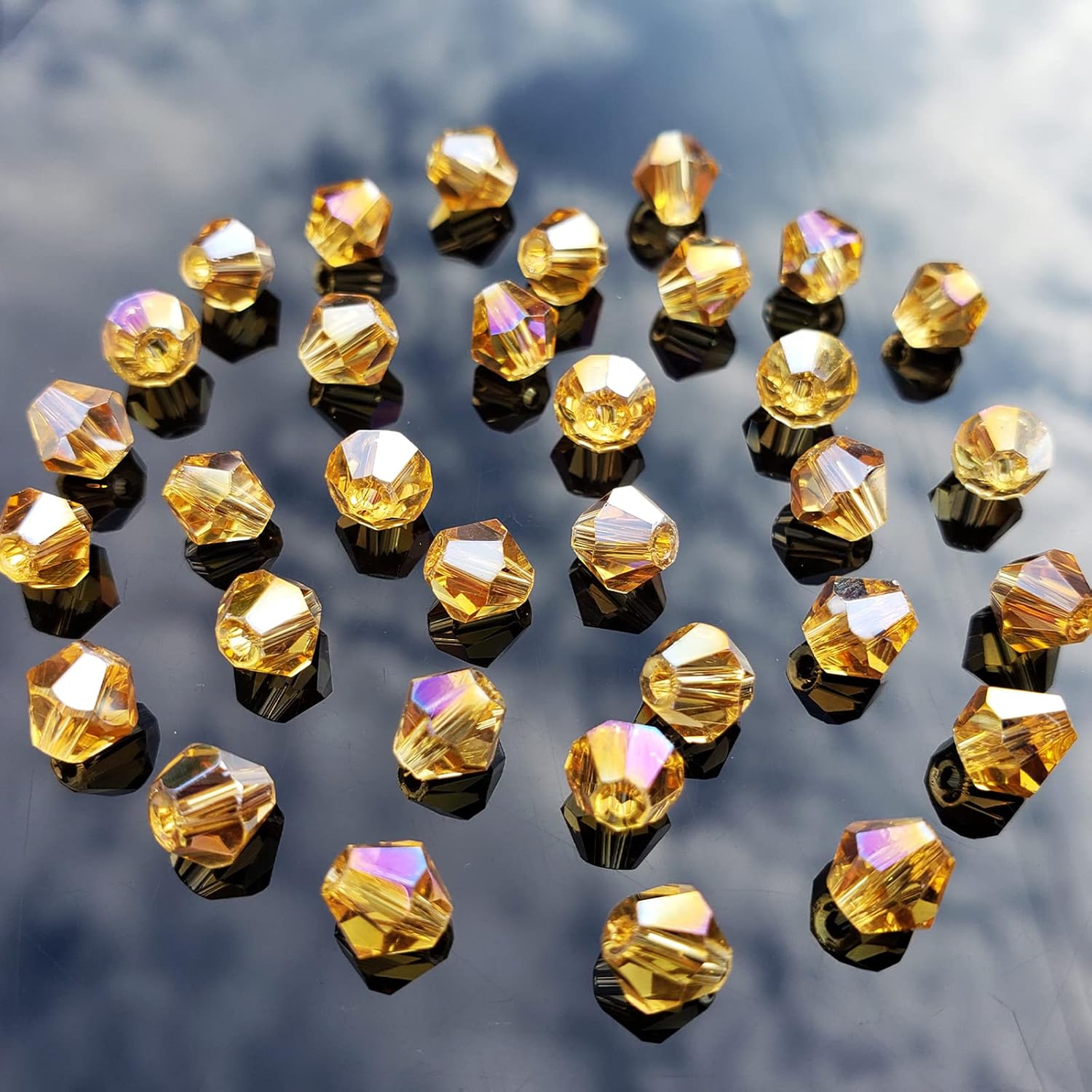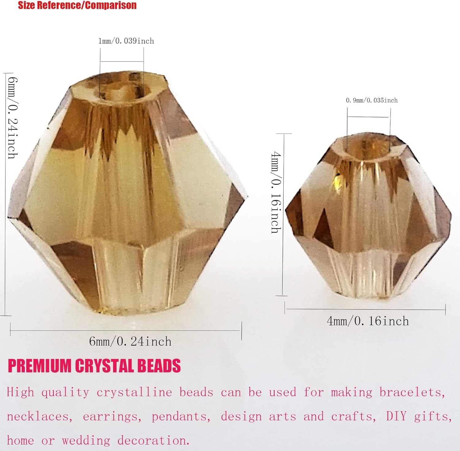 - 【QUALITY MATERIAL】Made of high quality crystal glass (synthetic quartz),odorless and non-toxic. Crystal with multi-faceted Bicone shape design will refract light,multi-faceted cutting, not easy to break or deform, durable, different light will show different colors and add a gorgeous glow to your jewelry or crafts. The actual color effect of the bicone beads is very good, rich, uniform and bright, better than the picture, worth trying.