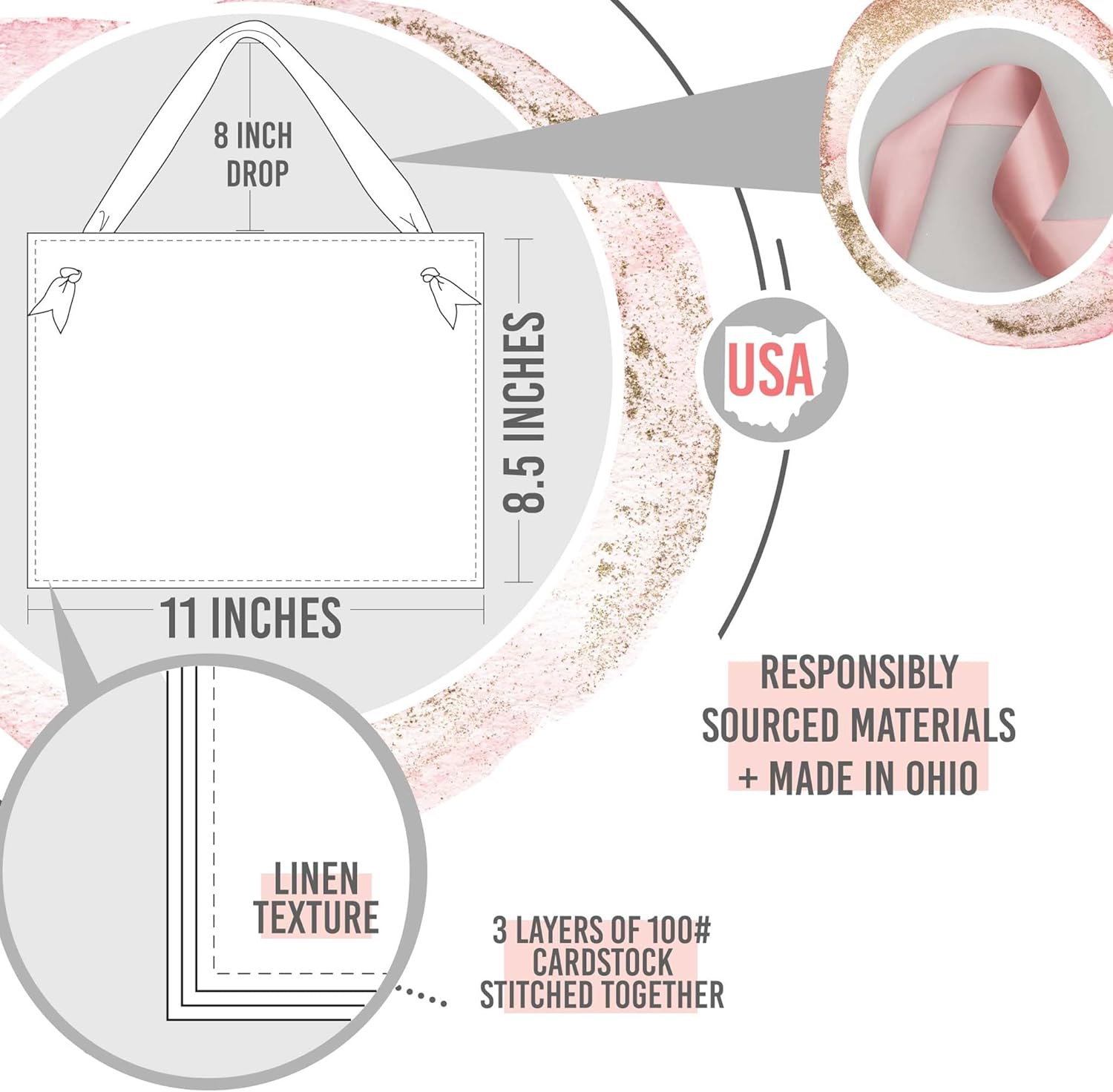 - Linen Cardstock with Stitching: each sign is meticulously crafted from three layers of cardstock, stitched together to exude elegance and perfectly complement the linen texture - 11x8.5 inches