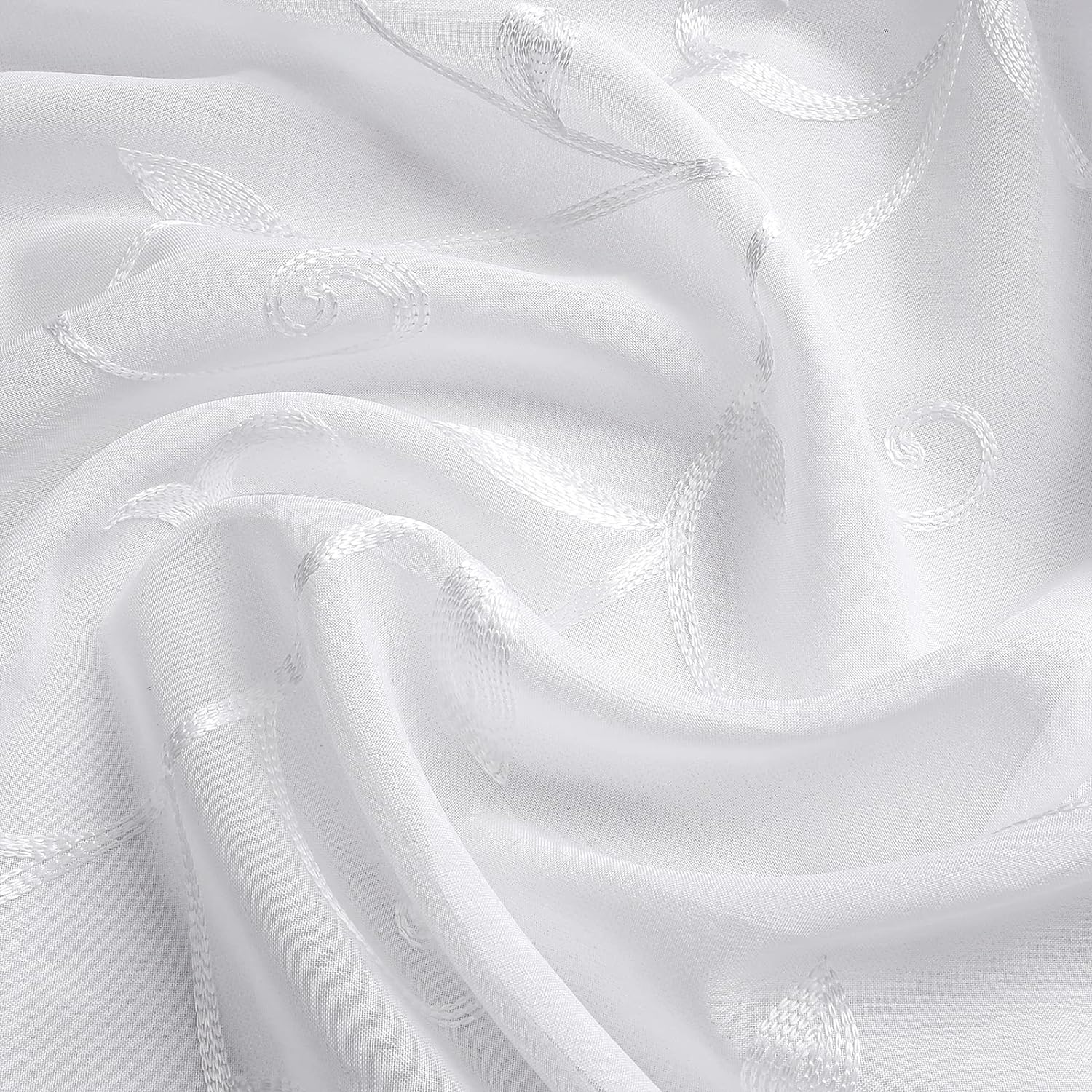 VISIONTEX White Leaves Sheer Voile Curtains, Decorative Embroidery Rod Pocket Window Drapes for Home Living Room and Bedroom 54 x 84 Inch, Set of 2 Curtain Panels