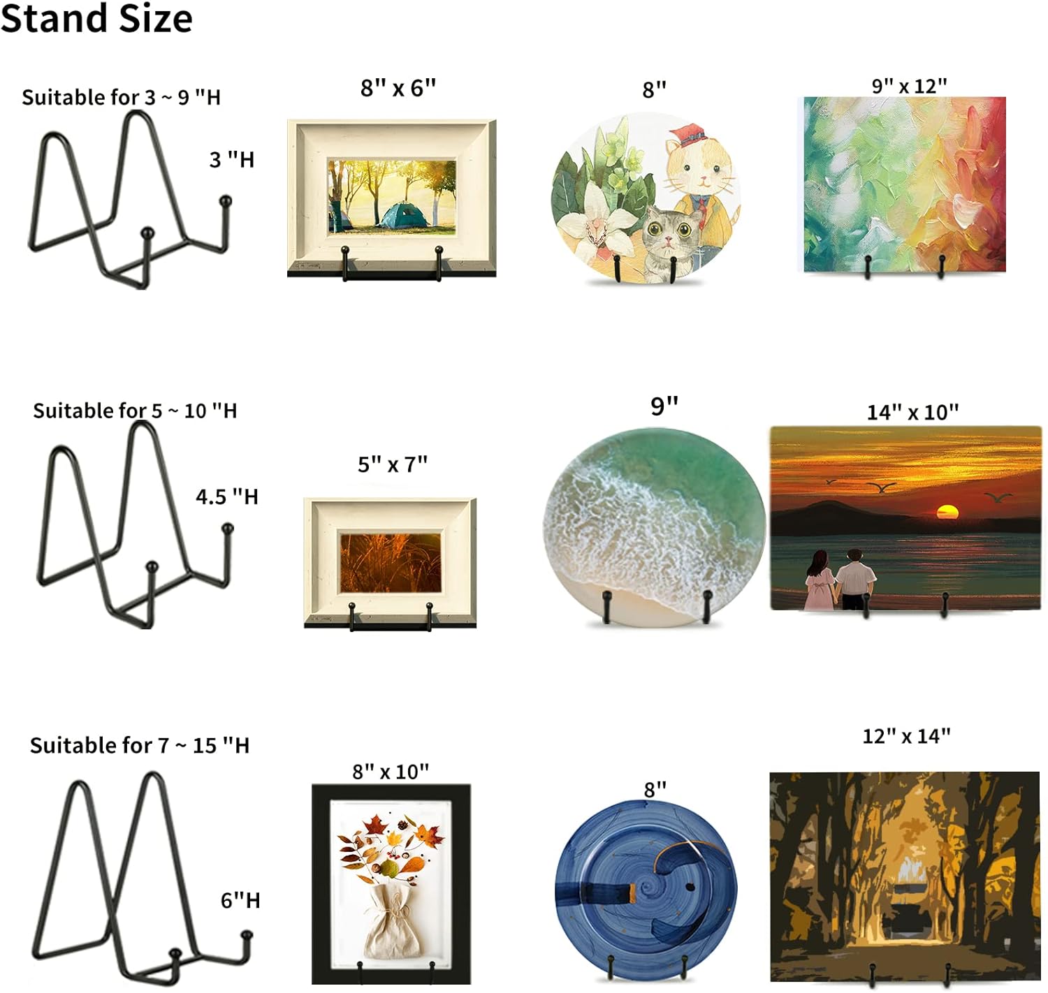 - Classic black display stand, versatile. Available for standing painted tiles, decorative boards, commemorative boards, photo frames, pictures, postcards, books, canvases, etc.
