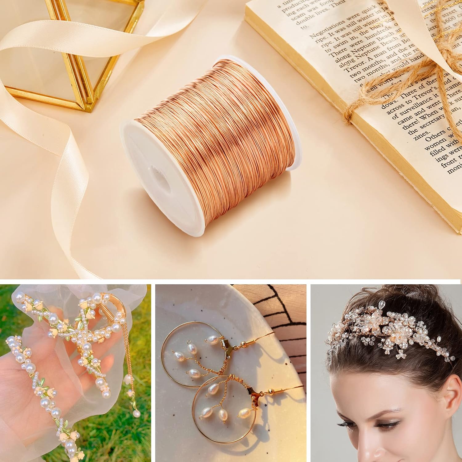 - π[Rose Gold Brass Wire] The craft wire is made of high quality brass with rose gold plated. This metal wire is durable, nickel free and lead-free.