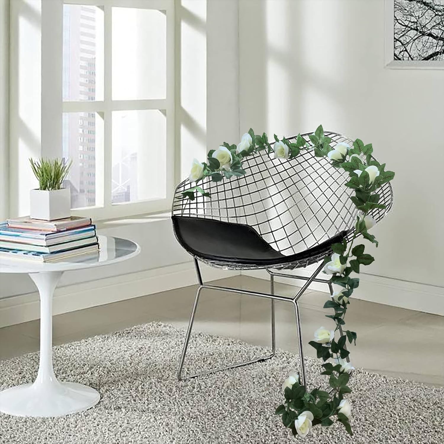 2 Pack Artificial Rose Vine Garland Fake Roses Flowers Plants Vines Hanging Floral Leaves Decoration for Wedding Party Table Garden Arch Wall Home Room Decor(White)