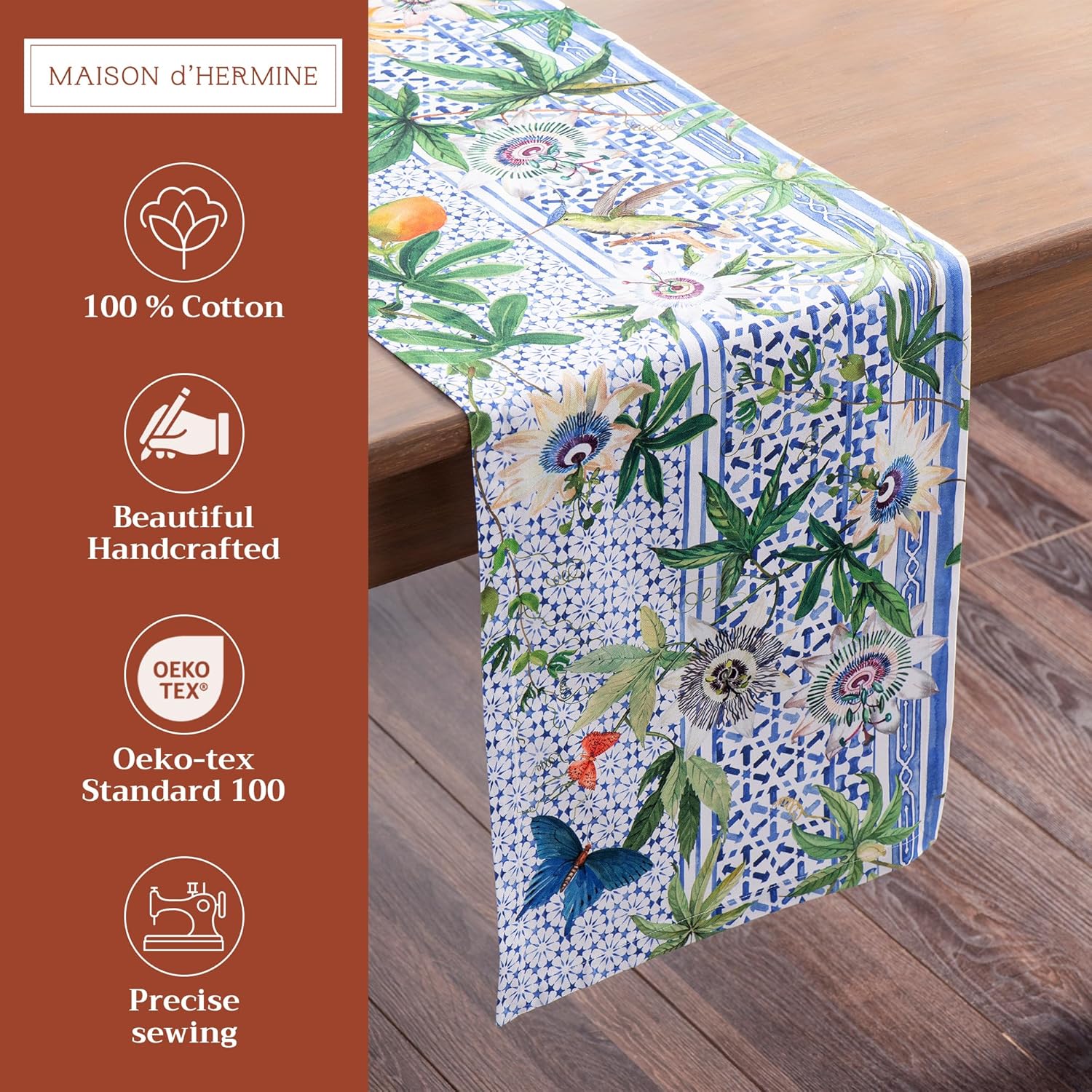 Maison d' Hermine Table Runner 100% Cotton Single Layer Table Runners 108 inches Long Decorative for Home Kitchen Dining Party Wedding Bridal Shower Spring Summer (Passiflora, 14.50" x 108")