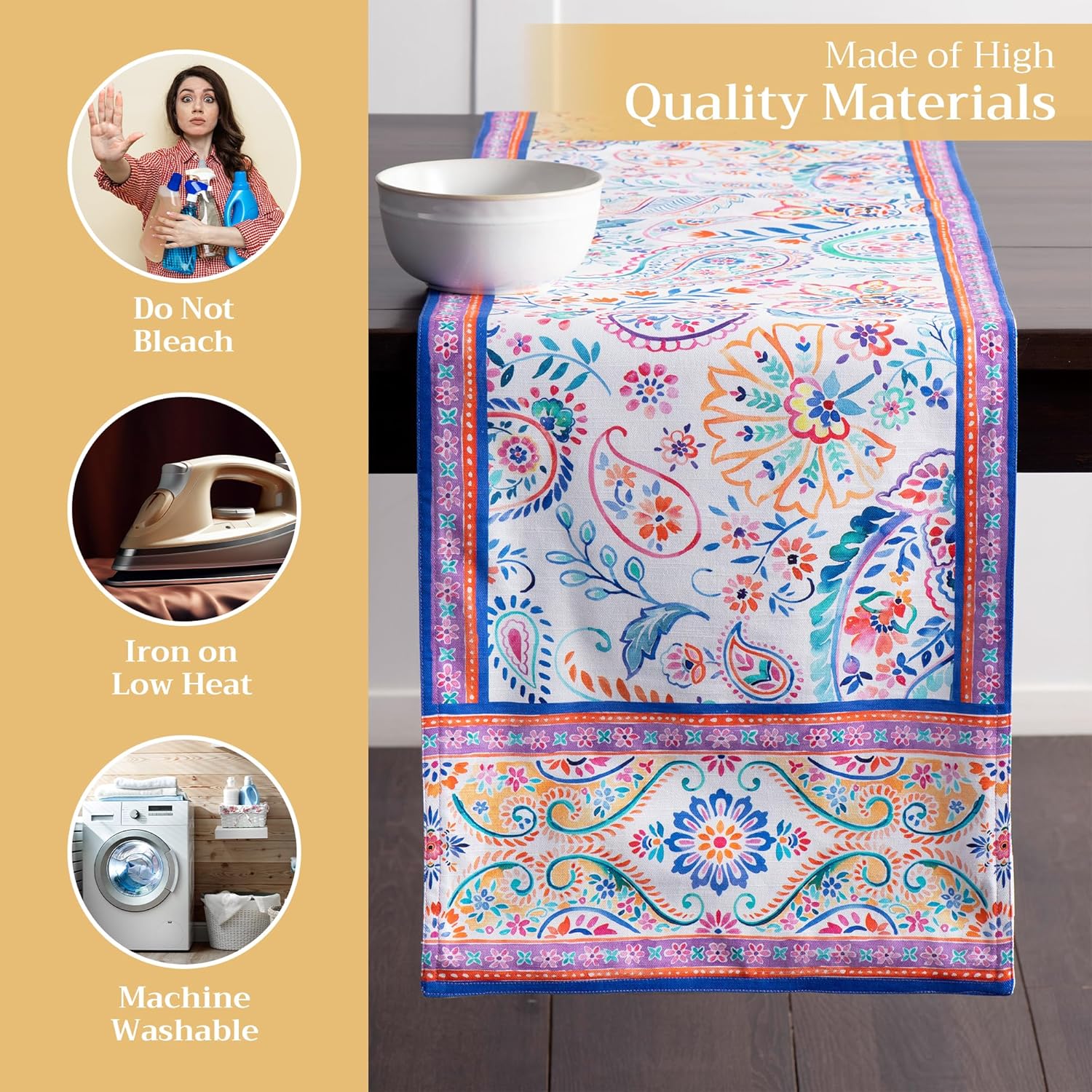 - Unique design: Each table runners features watercolor artwork inspired by traditional European motifs, with intricate details and vibrant hues. Designed in Europe and made in India, it captures the warmth and elegance of artisan-crafted décor.