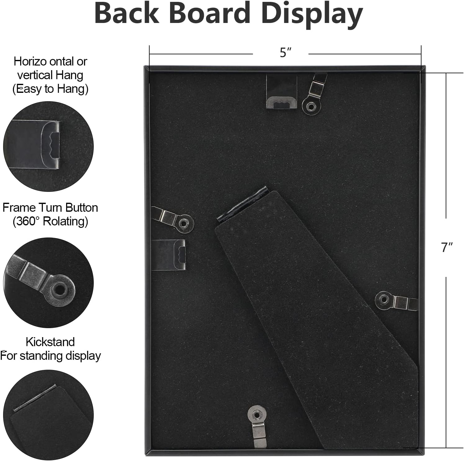 5x7 Picture Frame set of 2, Matte Black Modern Thin Aluminum Metal Photo Frames with HD Real Glass, Display for Tabletop and Wall Collage, 2 Pack