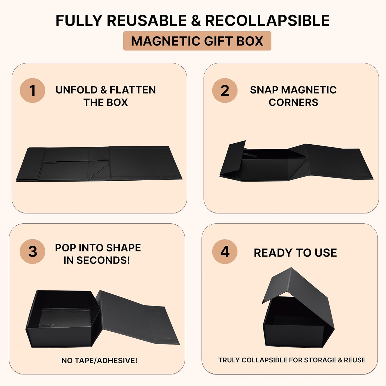 - ππ¨π₯ππππ, π¦π¨π¦π§πππ‘ππππ & π πππ π§π’ πππ¦π§: Made with thick, sturdy greyboard (made with 75% recycled material), our magnetic gift boxes can handle heavier gifts without bending or collapsing.
