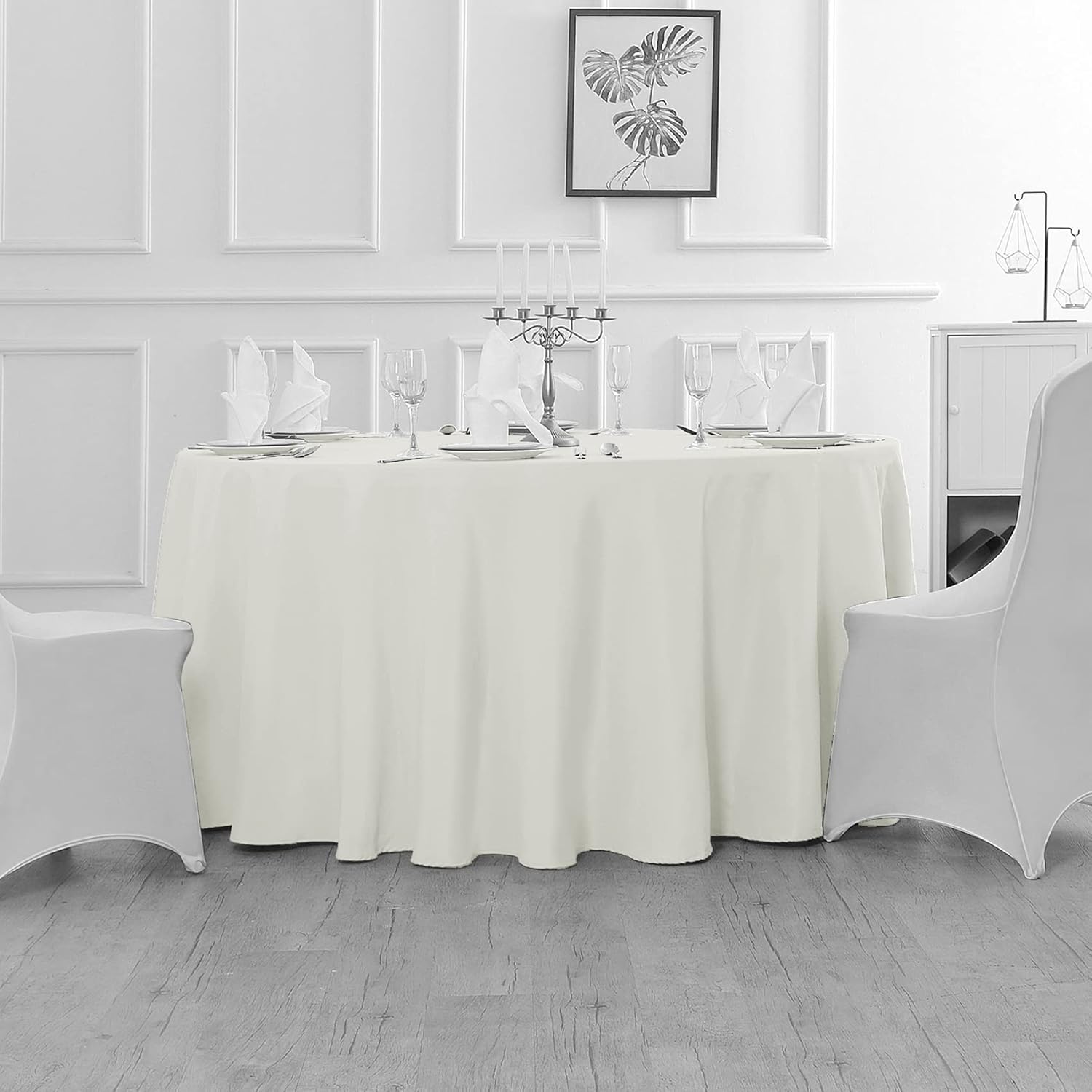 Fokitut 12 Pack Waterproof Round Tablecloth, 108 Inch, Stain Resistant and Wrinkle Polyester Table Cloth, Fabric Table Cover for Kitchen Dining, Wedding, Party, Holiday Dinner-Ivory