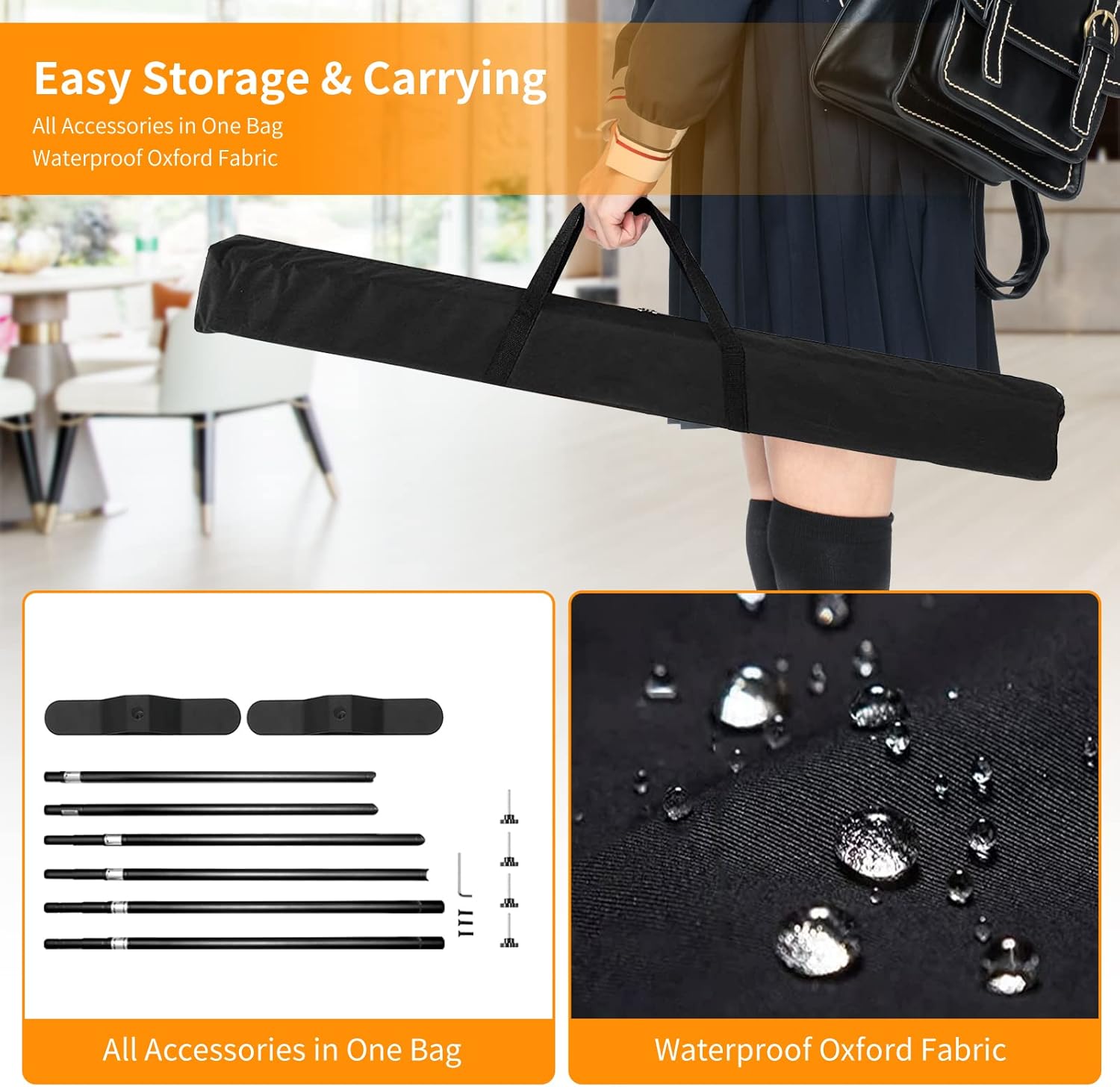 - 【Easy to Assemble & Easy to Carry】 Features telescopic design, easy to adjust width and height by twisting the bar into place, set up a background stand in a few minutes with no extra tool.