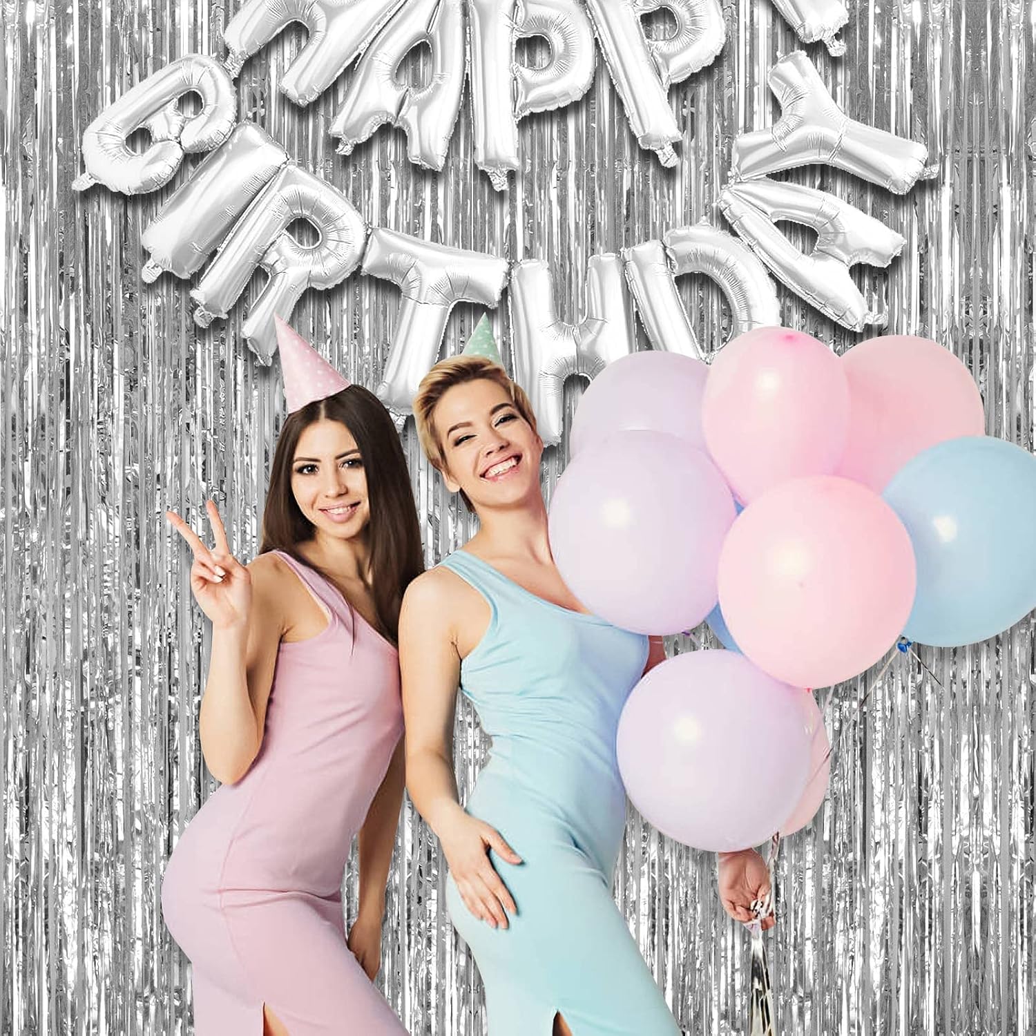 2 Pack Silver Fringe Curtains Foil Shiny Fringe Backdrop Tinsel Door Streamers Foil Curtains for Birthday Wedding Engagement Bridal Shower Celebration Party Decorations Large