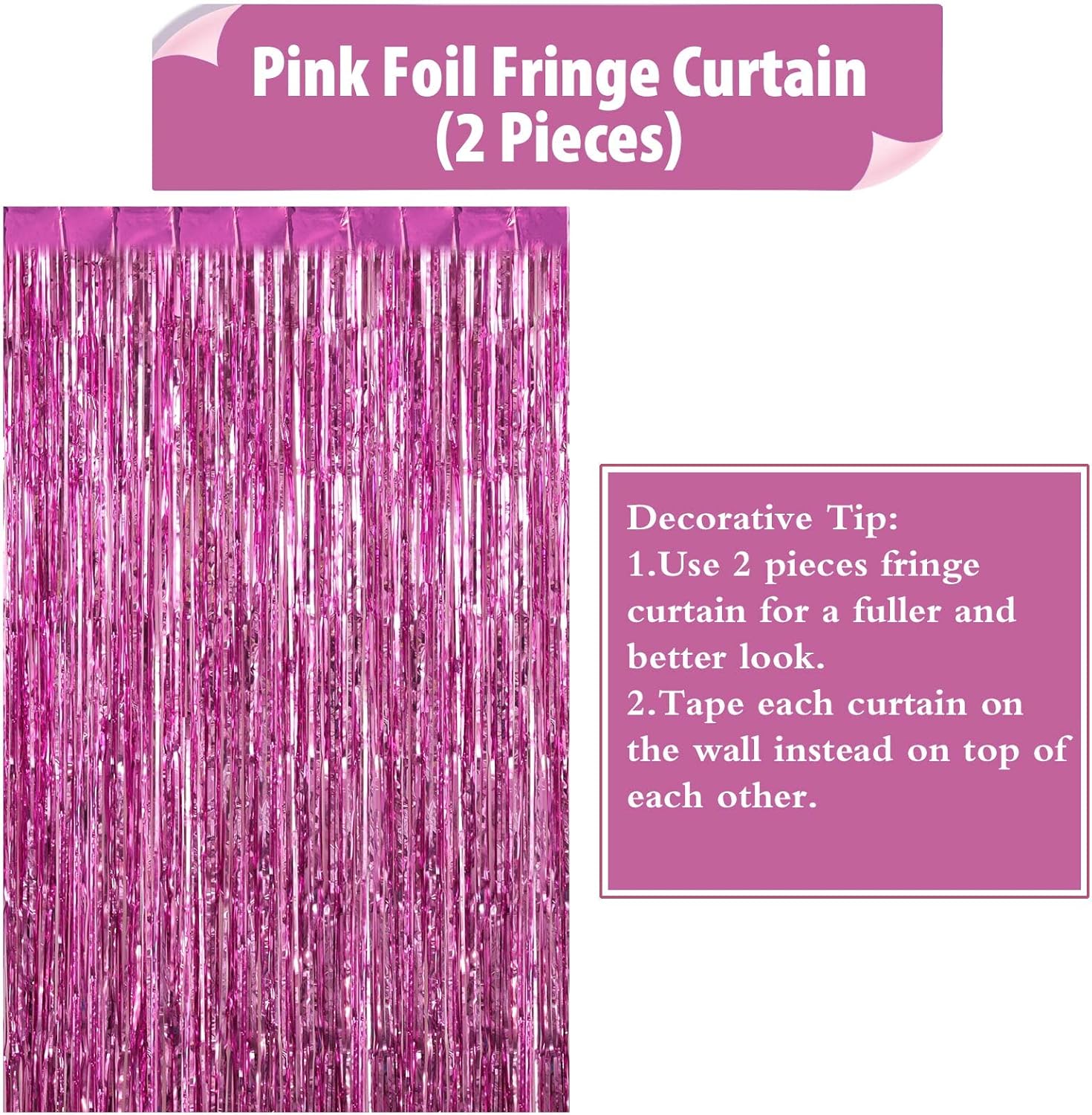 2 Pack Pink Fringe Curtains Foil Shiny Fringe Backdrop Tinsel Door Streamers Foil Curtains for Birthday Wedding Engagement Bridal Shower Celebration Party Decorations Large