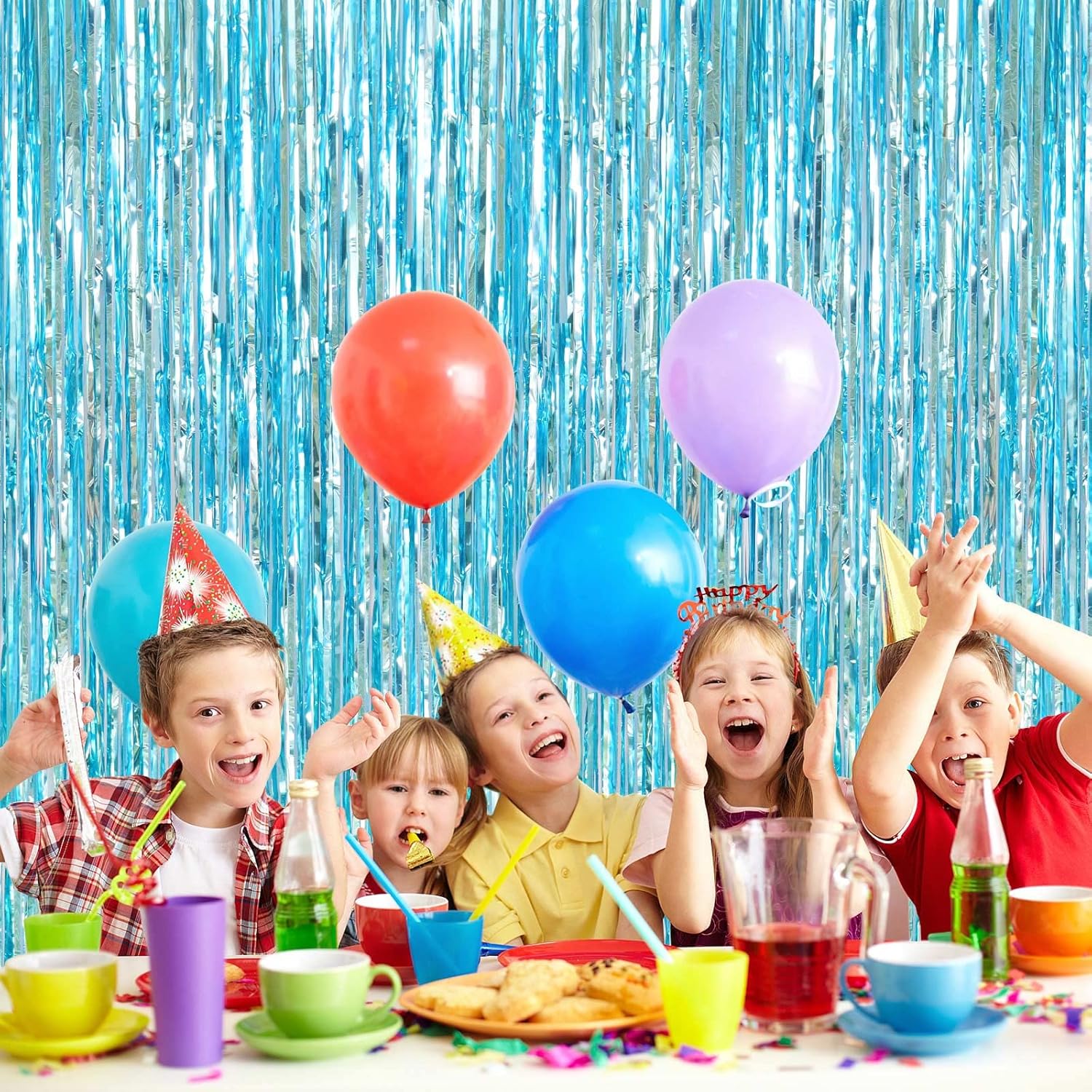 2 Pack Light Blue Fringe Curtains Foil Shiny Fringe Backdrop Tinsel Door Streamers Foil Curtains for Birthday Wedding Engagement Bridal Shower Celebration Party Decorations Large