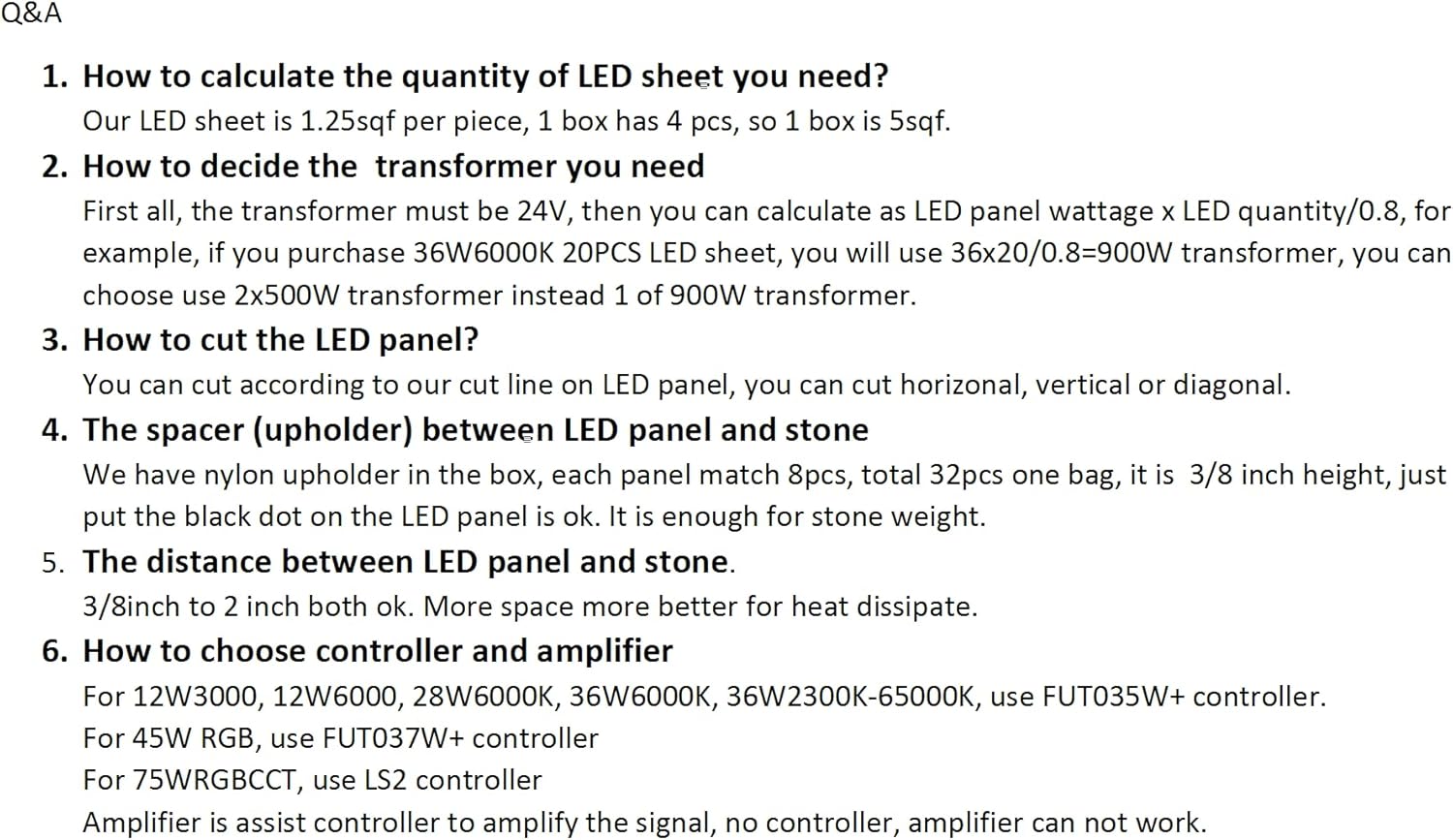 - What inside package. 4pcs led panel, it can cover 5 sqf, 8 pcs short connect line each is 3 inch length, 8 pcs long connector line each is 8 inch, 1 installation manual, 24pcs spacer. Transformer and controller is not included