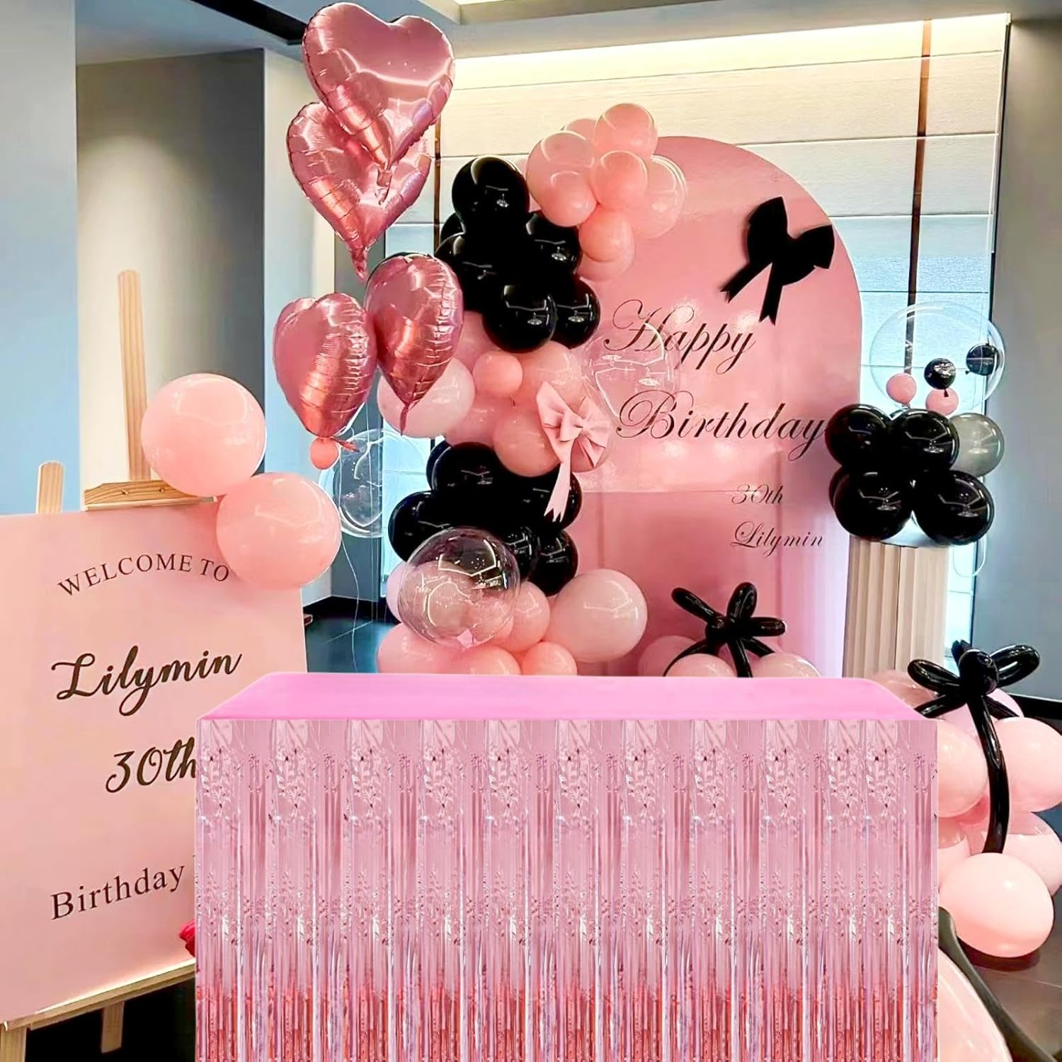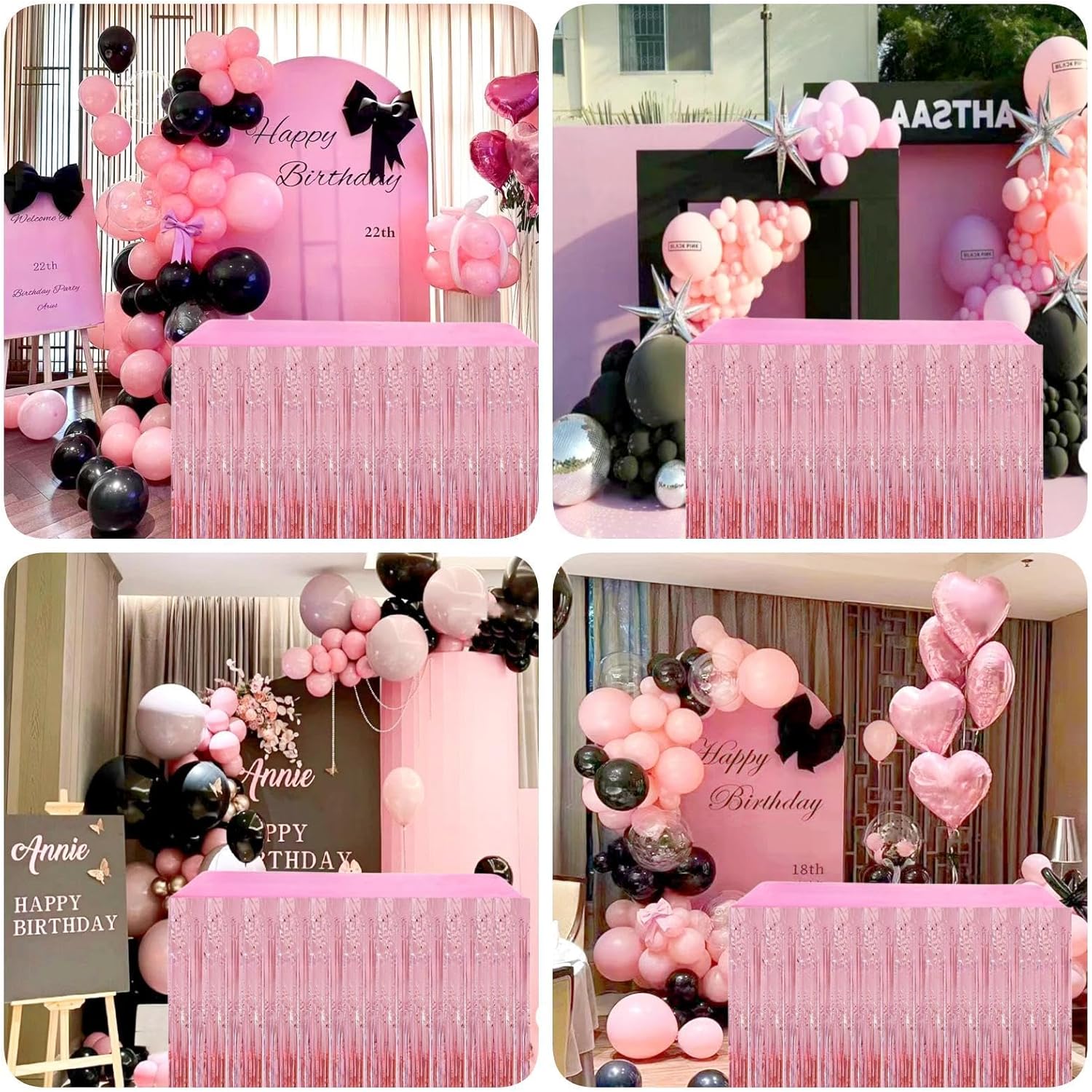 Pink Streamers Party Decorations, 2 Packs Pink Table Skirts Metallic Foil Fringe Tinsel for Birthday Bachelorette Girl Baby Shower Fiesta Float Parade Graduation Party Supplies -29x108Inch