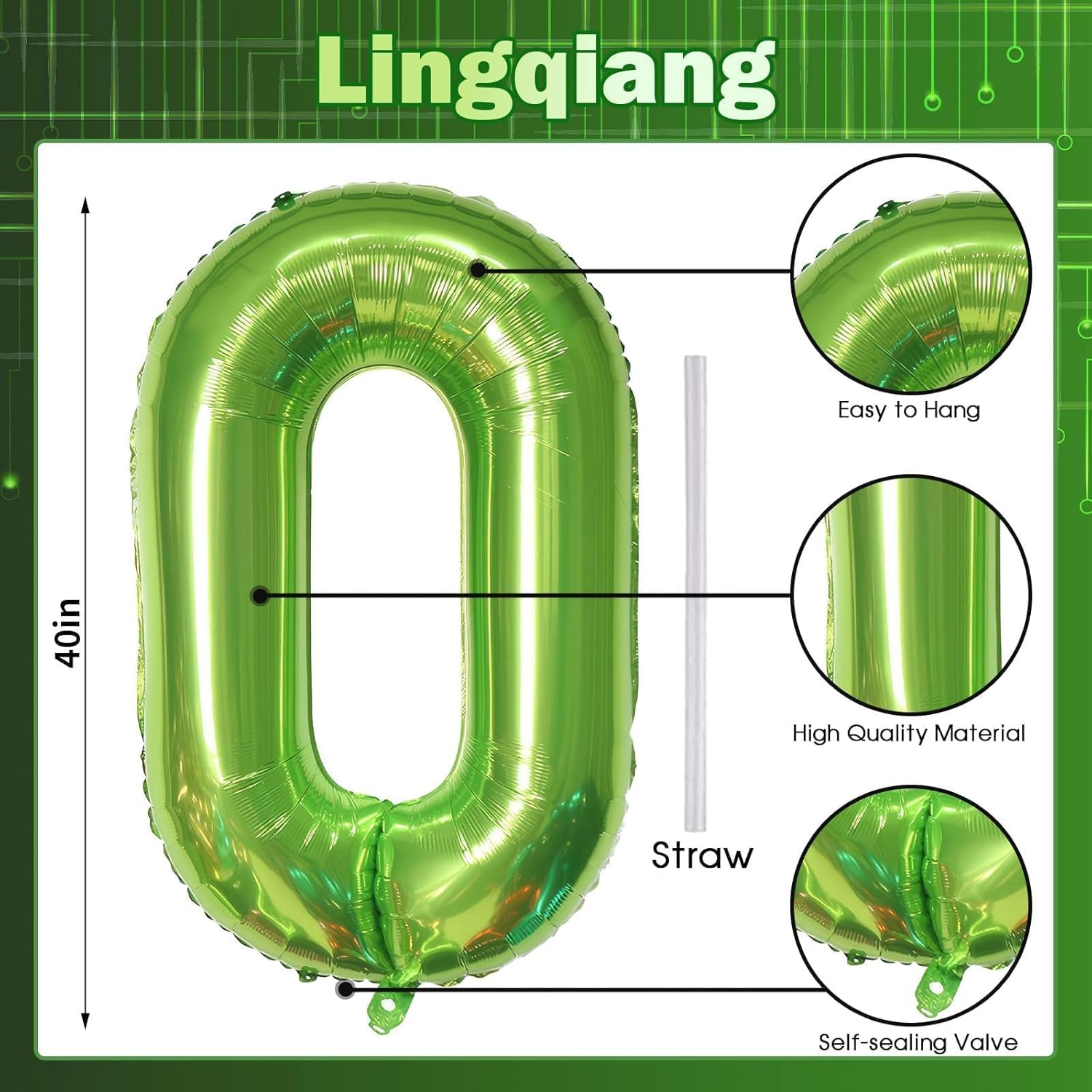 - π Green Number 0 Balloon π - You will get 1pc 40 inch mylar foil number 0 balloon and 1pc straw. Perfect for 10th 20th 30th 40th 50th 60th 70th birthday or anniversary party decorations supplies.
