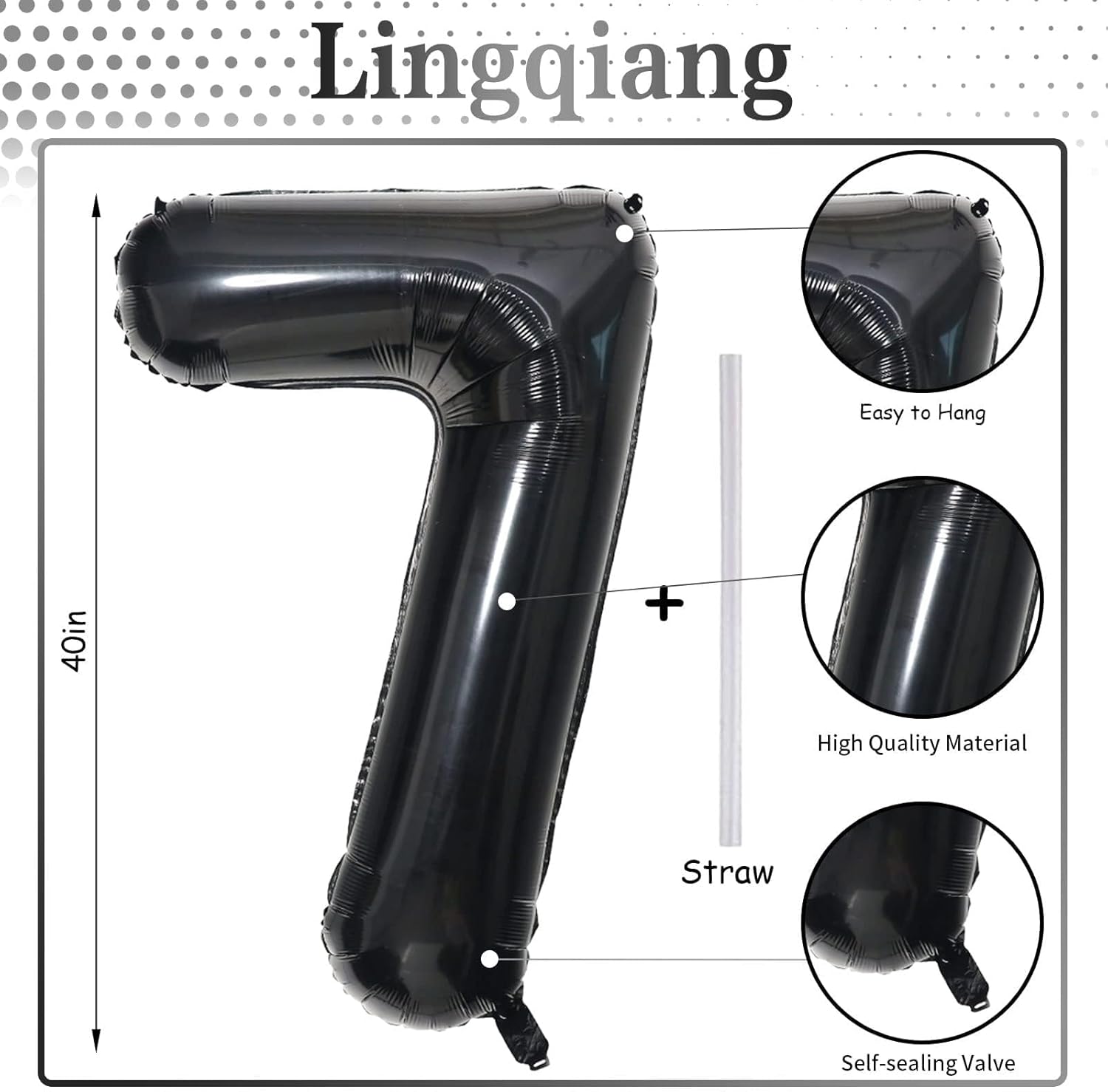 - π Black Number 7 Balloon π - You will get 1pc 40 inch mylar foil number 7 balloon and 1pc straw. Perfect for 7th 17th 27th 70th 75th birthday or anniversary party decorations supplies.