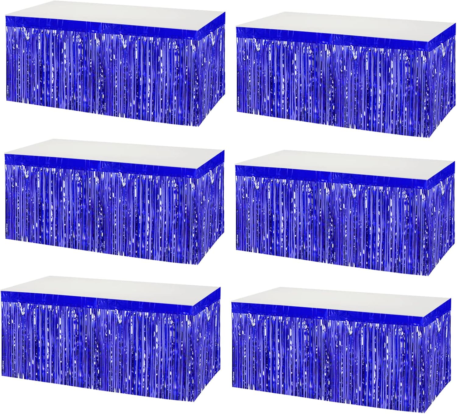 - 【Package Includes】6pcs/set metallic fringe table skirts / shiny tassel banner, beautiful and shiny, provide you with great decoration effects, Each pack of table skirt measures 29x108 inches. Each one will be 9 Ft long, 6 pack will cover 54 FT length of tables.