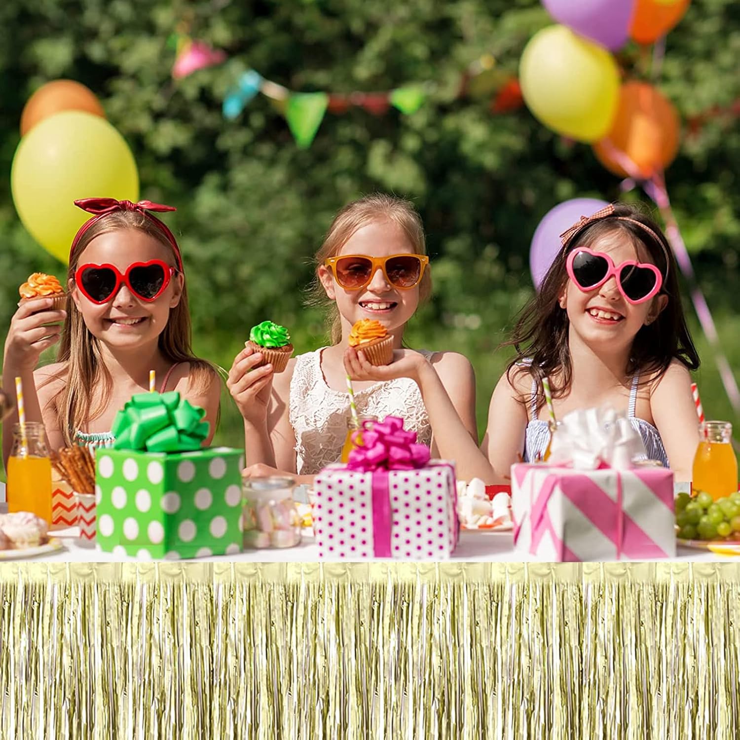 - 【Newest Shiny Foil table skirt】Metallic tassel table skirt are made of aluminum foil with sequins, making the foil table skirt more shiny and beautiful, making the party more complete!