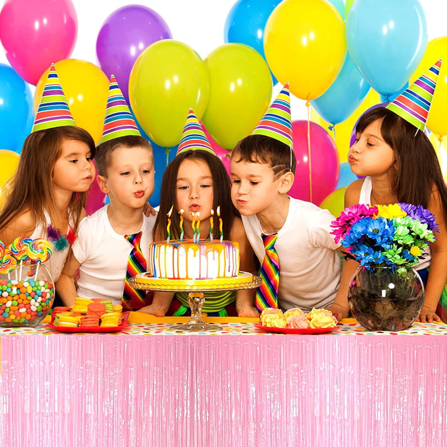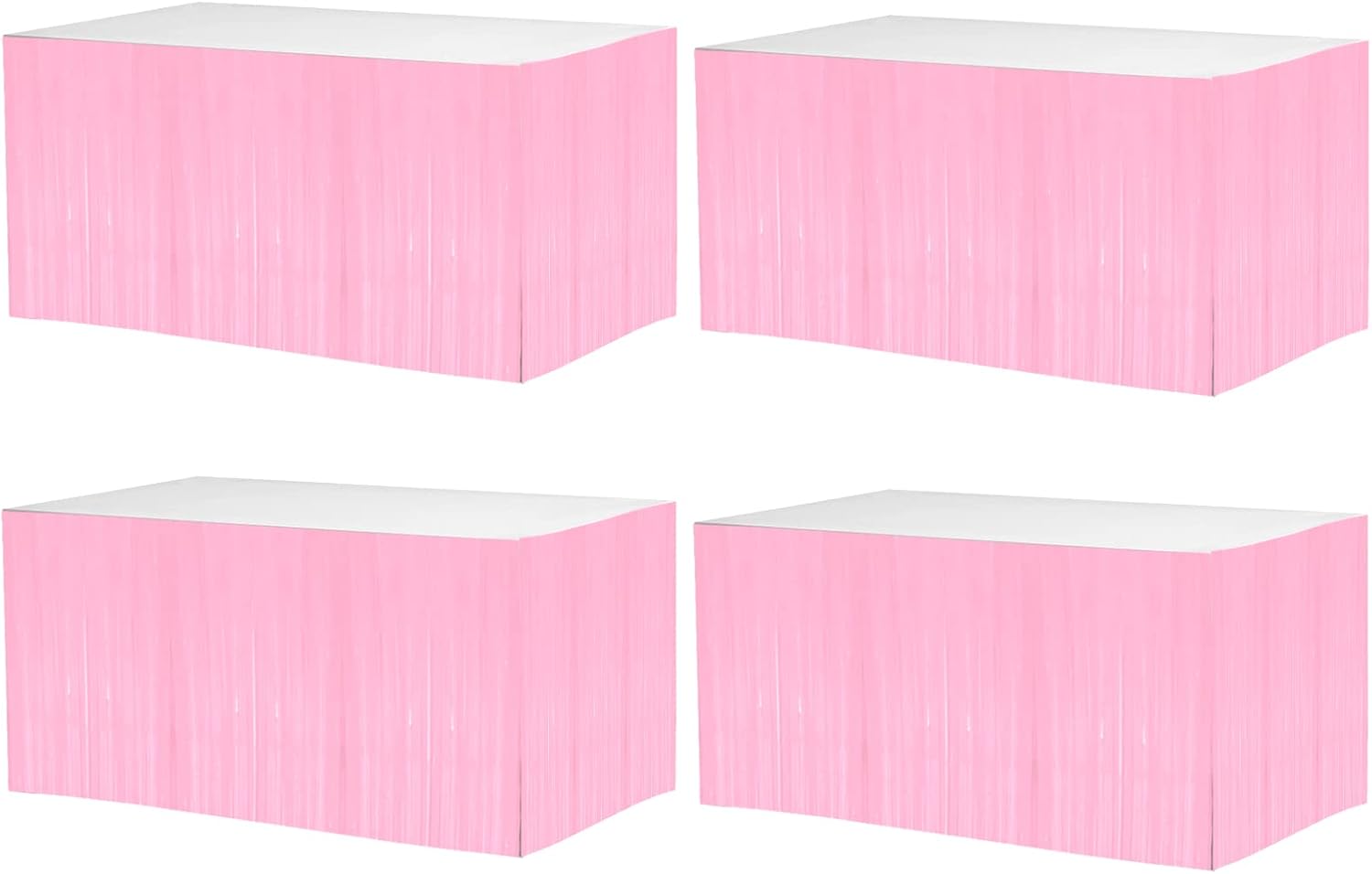 4 Pack 29x108 Inch Metallic Foil Fringe Tinsel Table Skirts for Rectangle Tables Streamer Backdrop for Wedding, Birthday, Parade Floats, Christmas, Halloween Party Decoration(Macaron Pink)